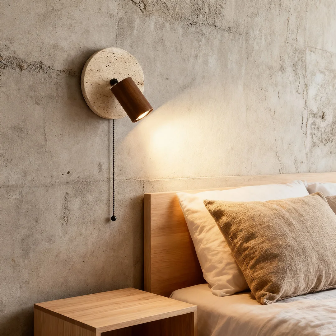 JACKSUN Wabi-Sabi New Yellow Cave Stone Bedroom Wall Lamp for Study with Switch, Rotatable for Master Bedroom Reading