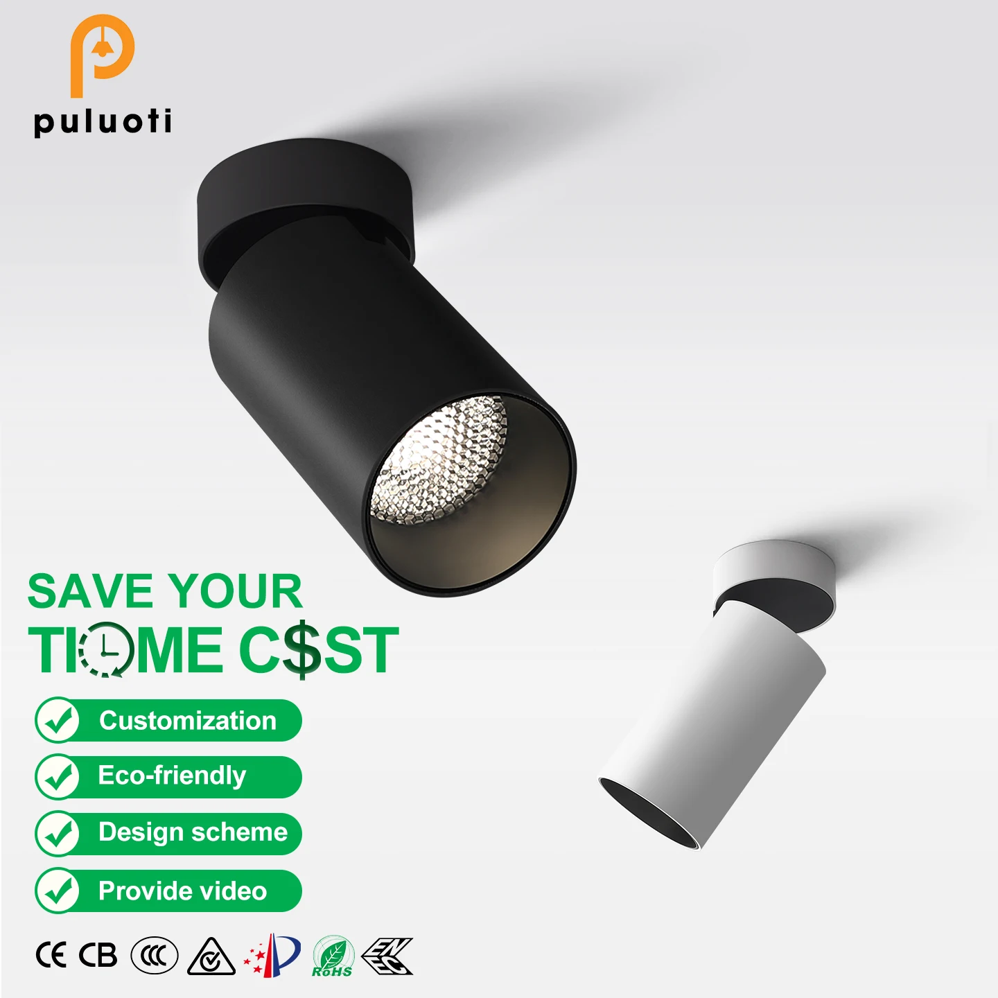 PULUOTI Modern 8W Surface LED Spotlight Adjustable Angle 360° Easy Installation Aluminum Body for Clothes Shop Ceiling Downlight