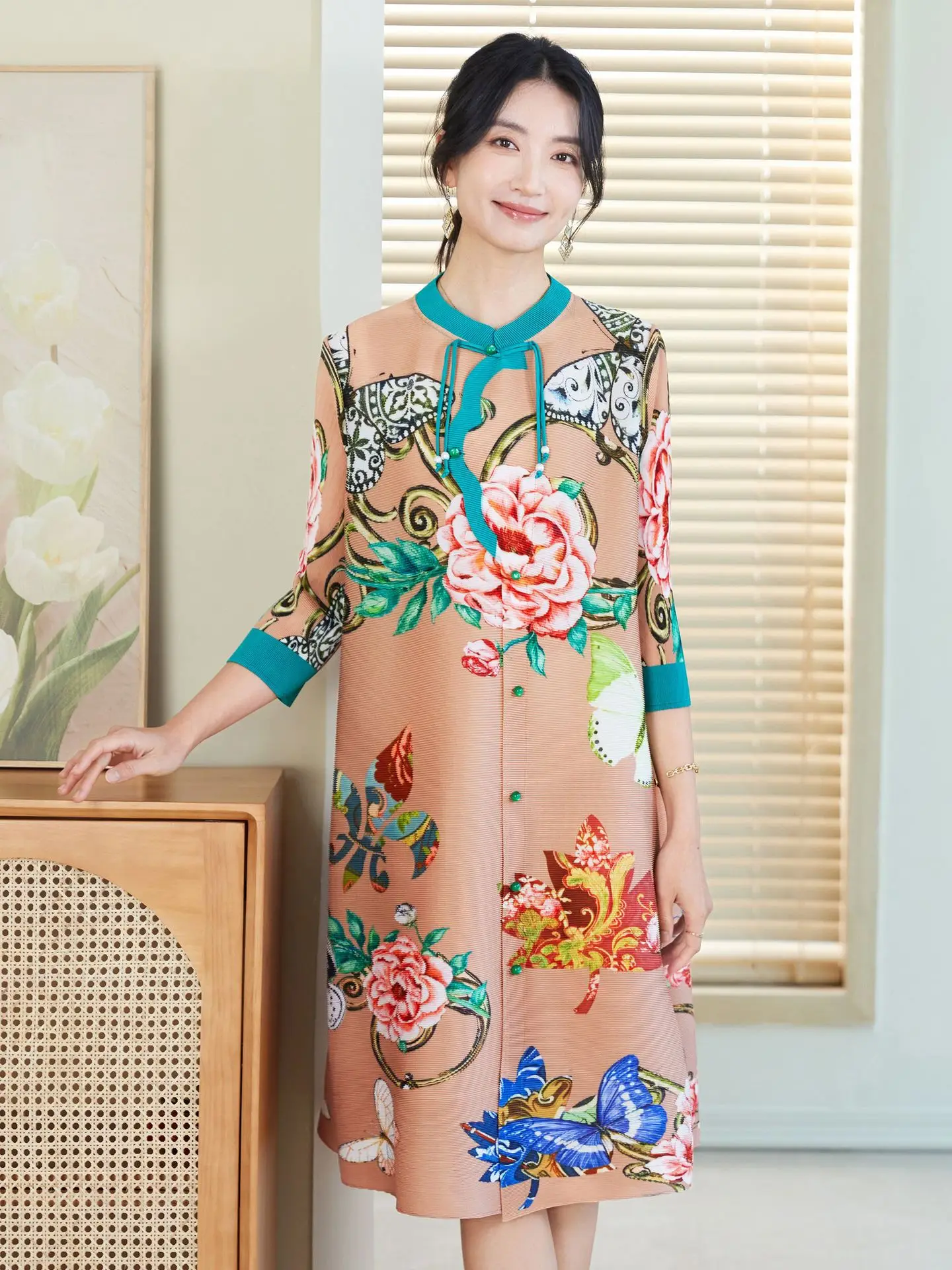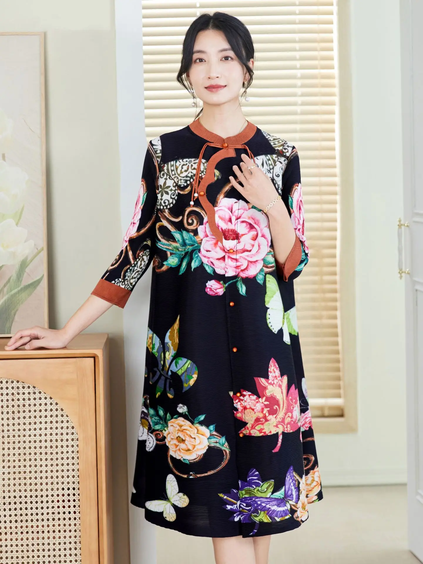 2026 New High-End Mom's Age-Reducing Western Style Dress Large Size Casual Floor-Length Chinese Style Printed Shirt for Ladies