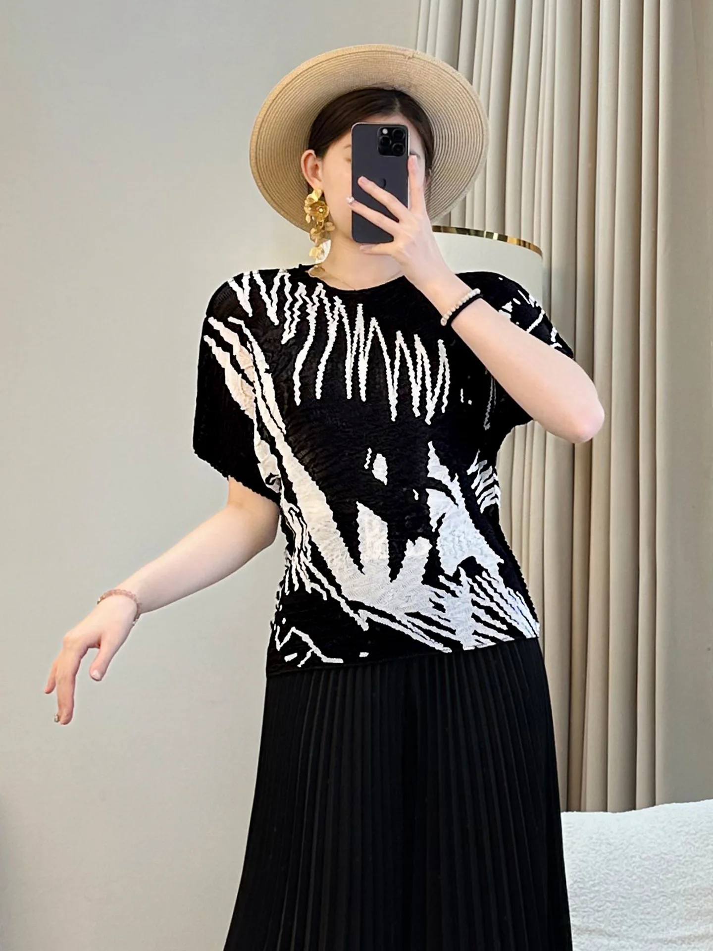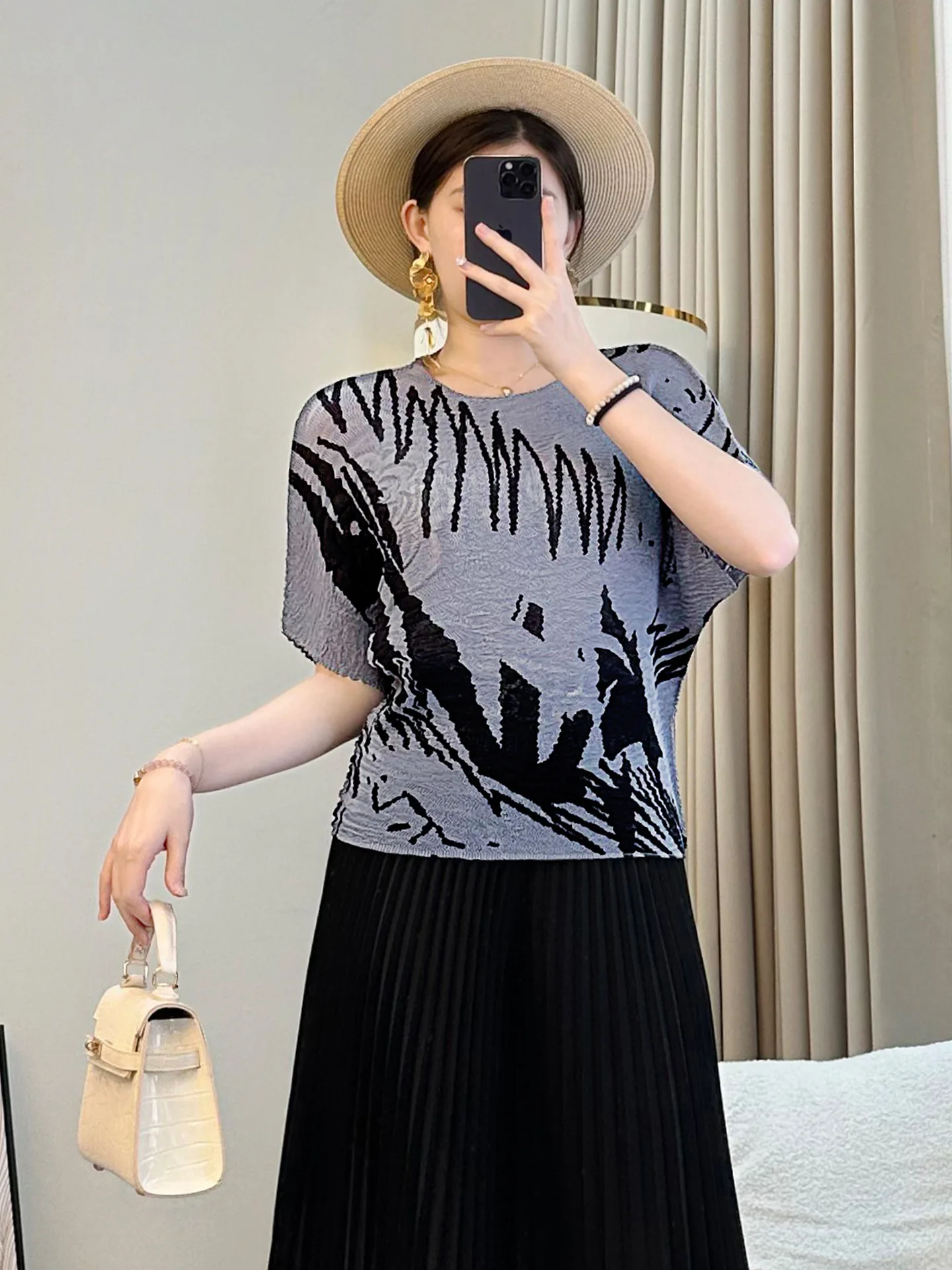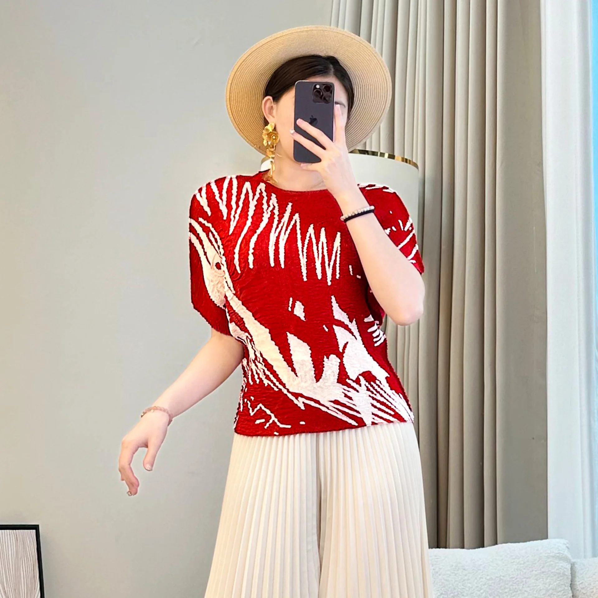 2026 Spring Summer Collection Women's Loose Slimming T-Shirt Red Meat Covering All-match Short Sleeve Design Casual Knitted