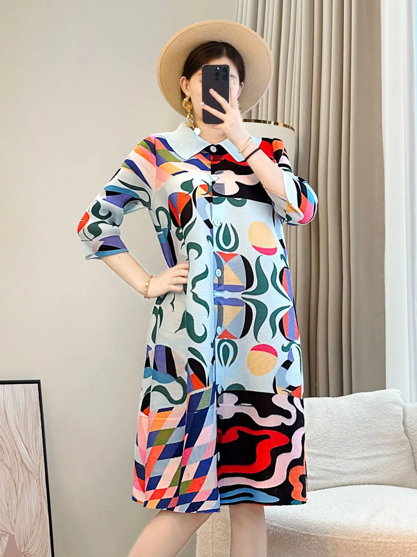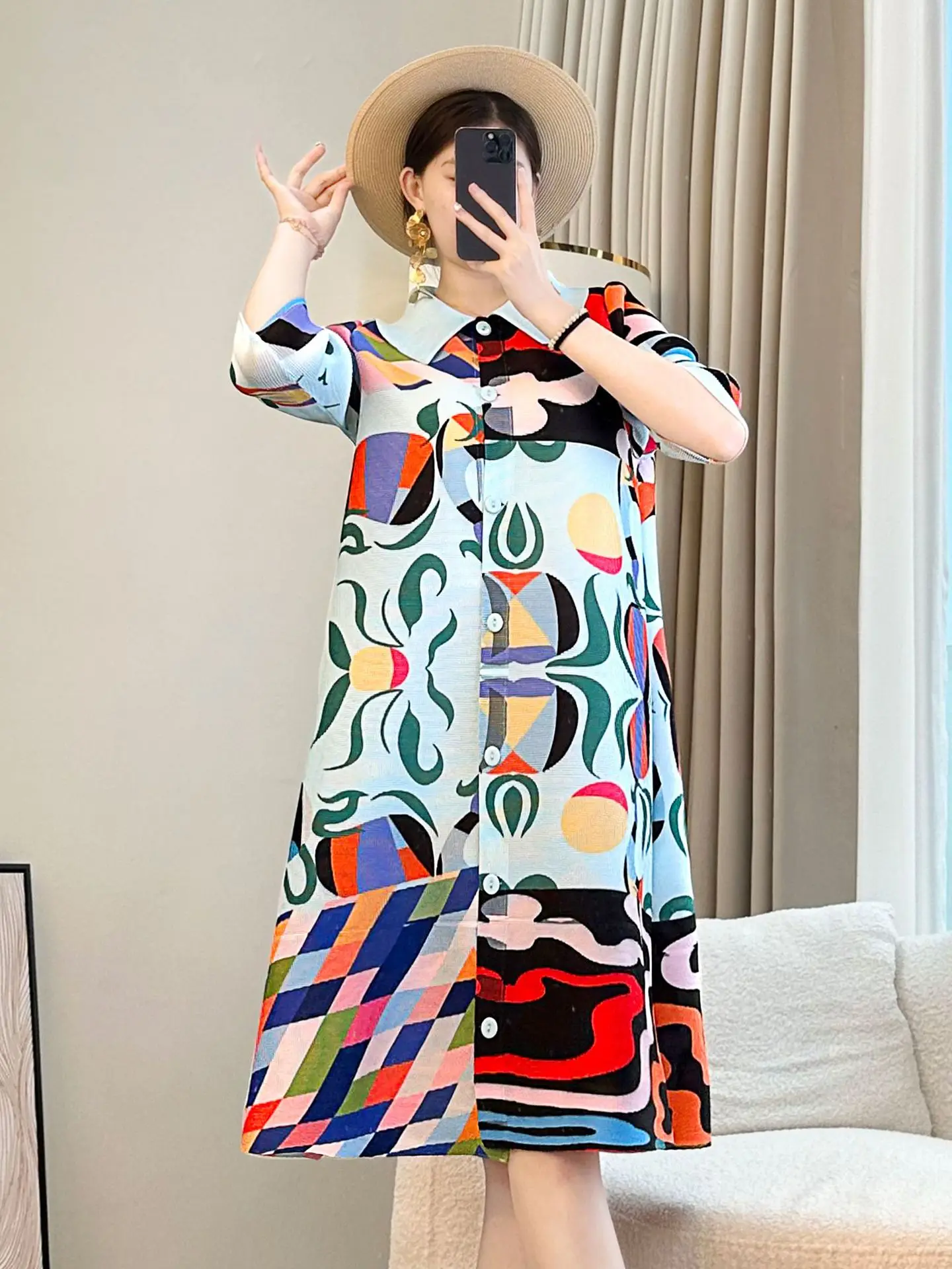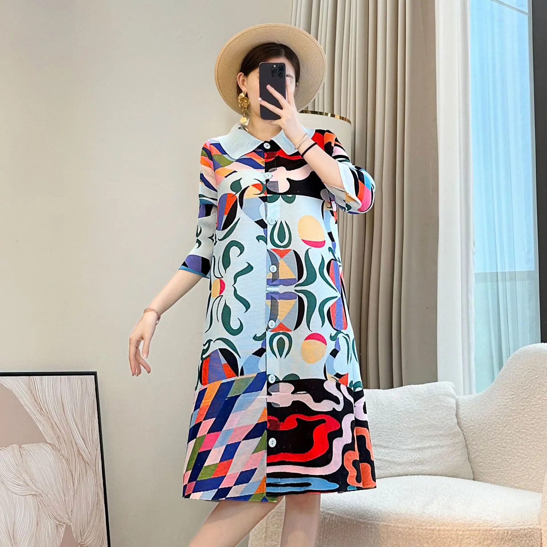 Stylish Floral Patterned Pleated Dress for Mom 2026 Summer New Loose Slimming Mid-Length Printed Chiffon Casual Knee-Length
