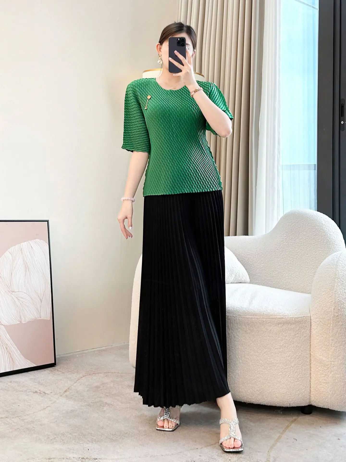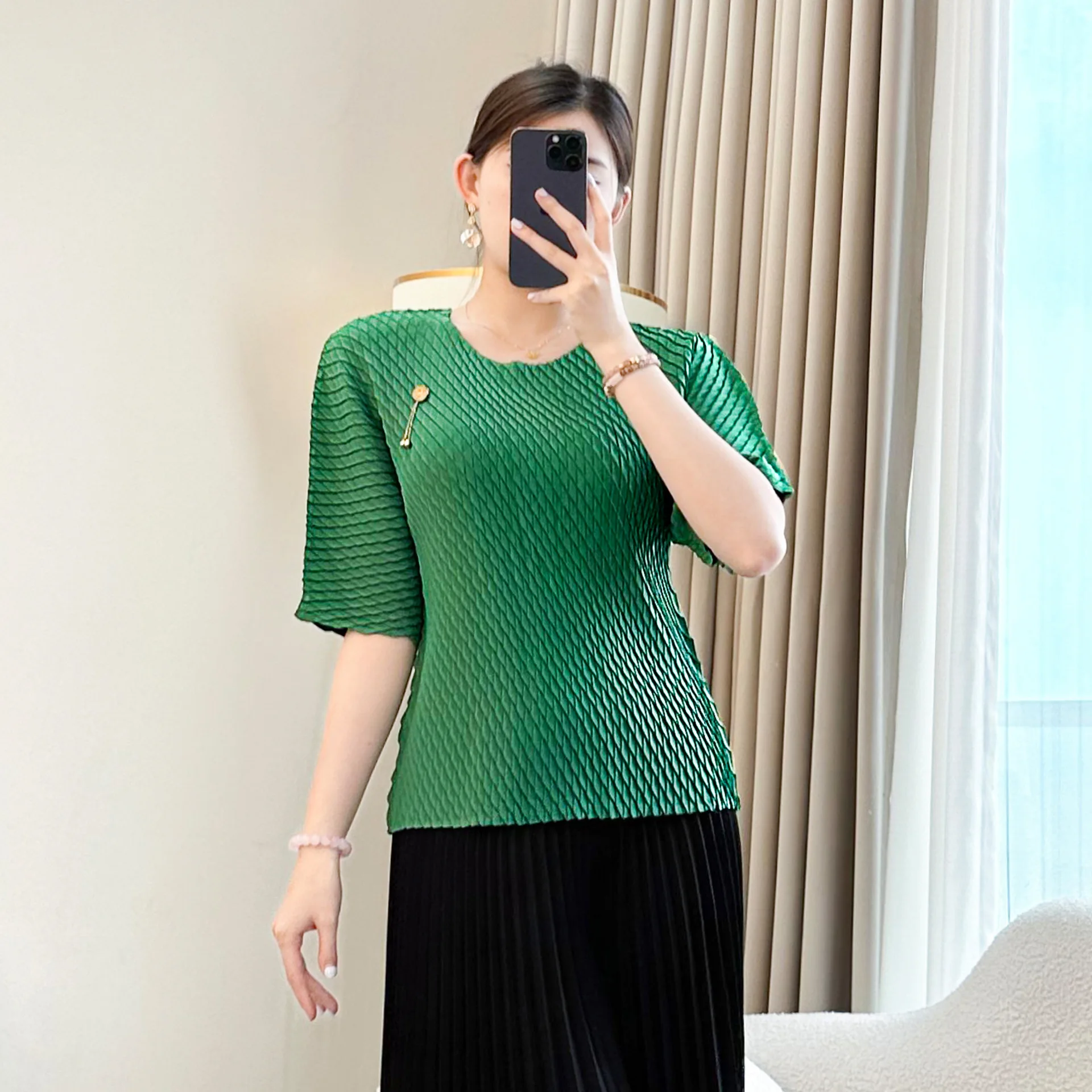 2026 Summer New Women's Green Loose Short Sleeve Top High-Grade Temperament Casual Solid Style Large Size Slim Fit T-Shirt