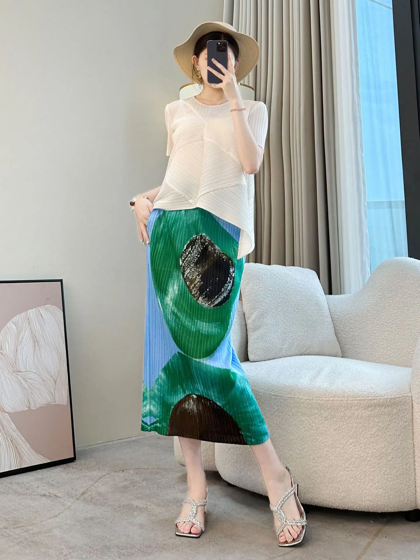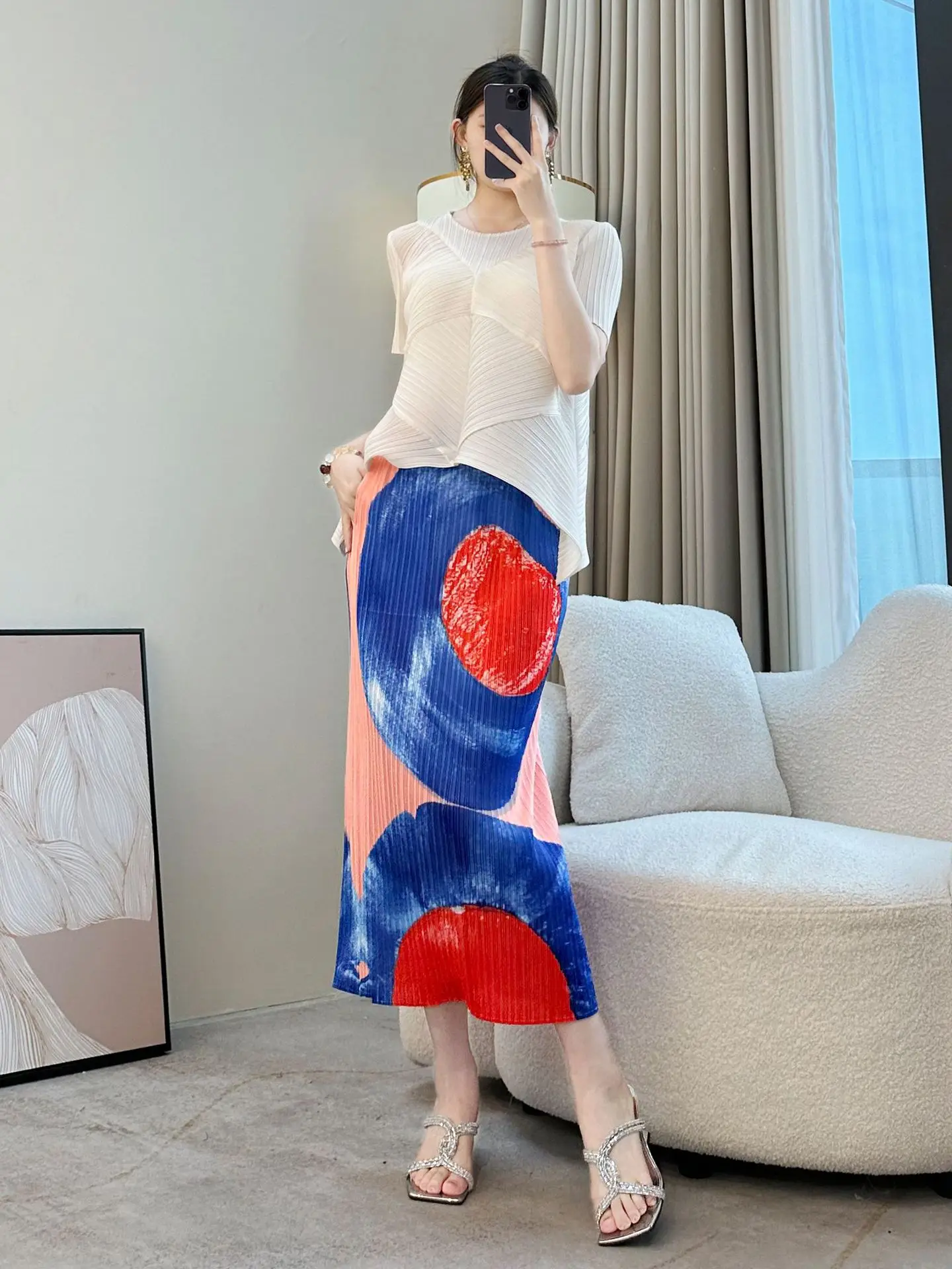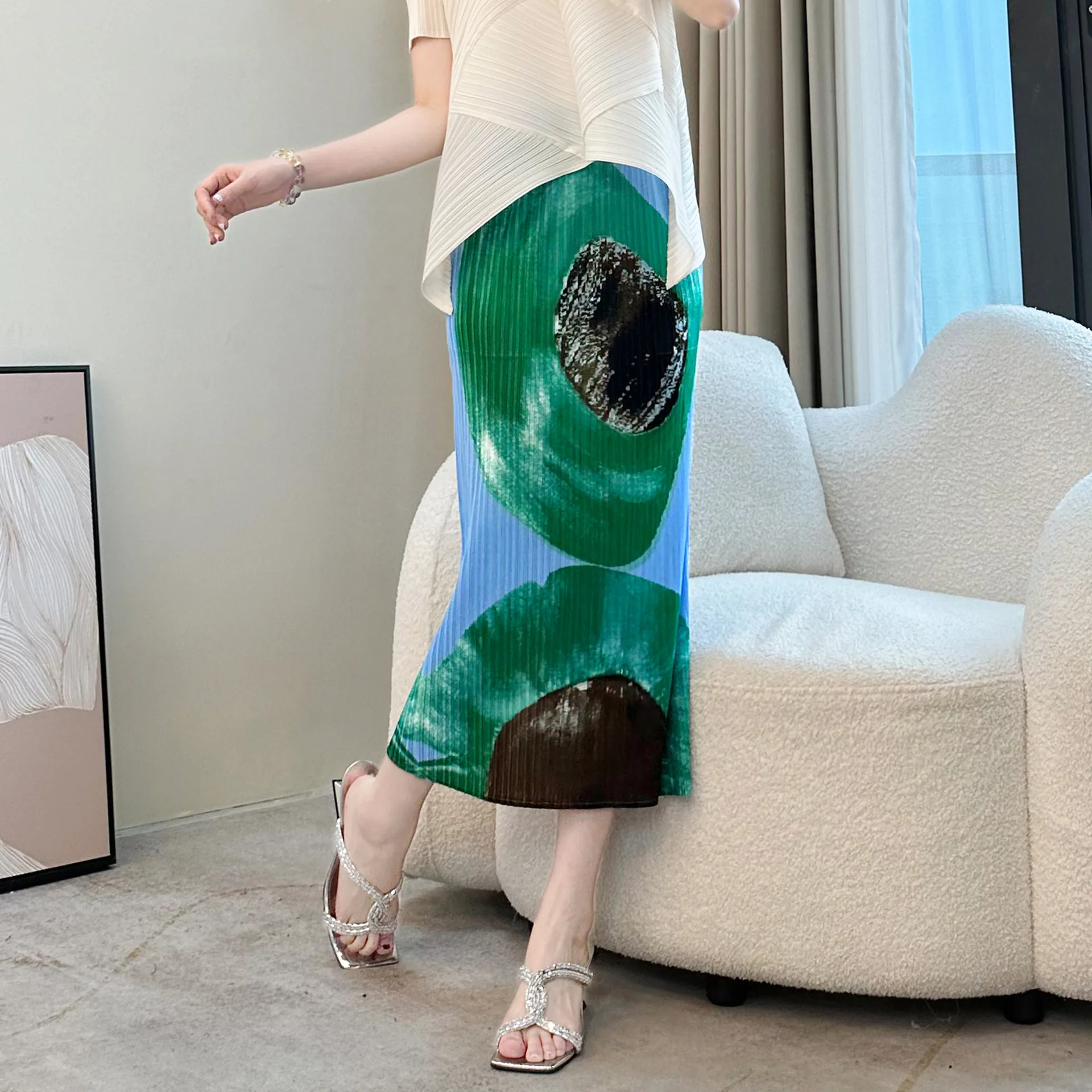 Miyake 2026 New Summer Elegant Mid-Length Split Pleated Skirt High Waist Slimming Chiffon Casual Style for Hip Skirt Lovers