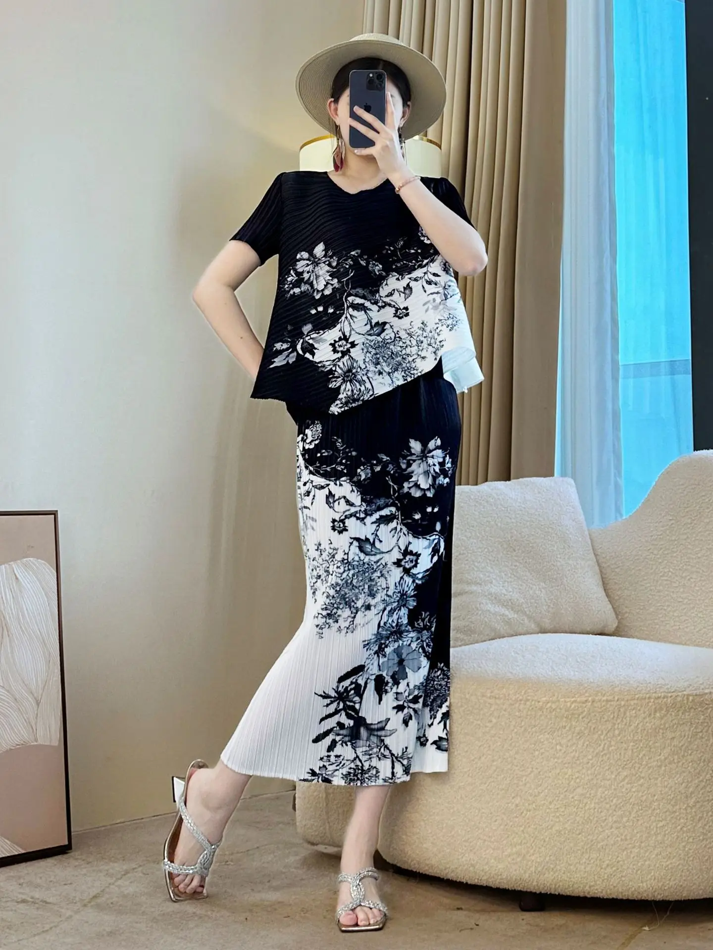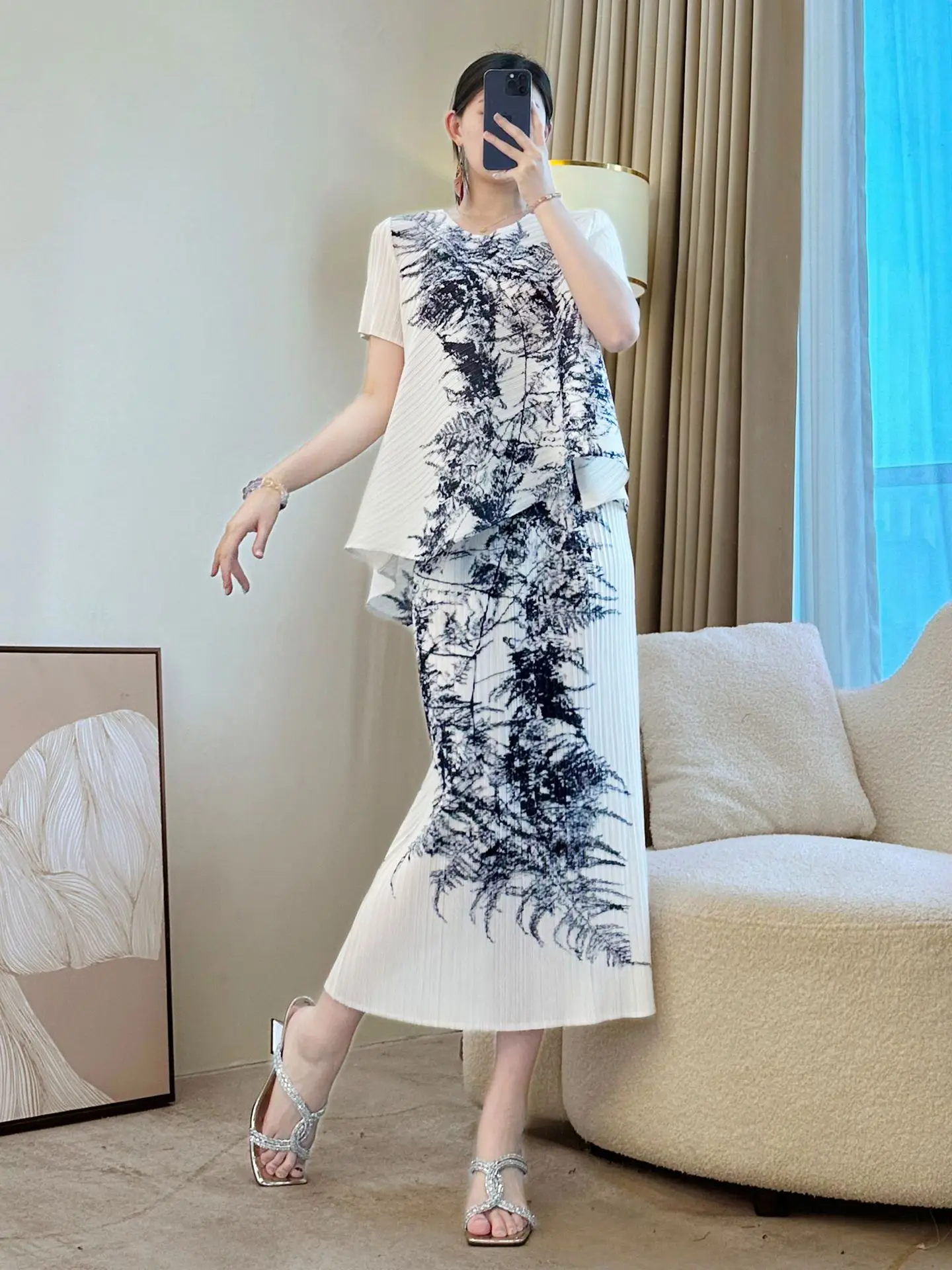 Casual White Chiffon Two-Piece Suit Chinese Style Summer Loose Irregular Age Reduction Dress Natural New Generation Foreign
