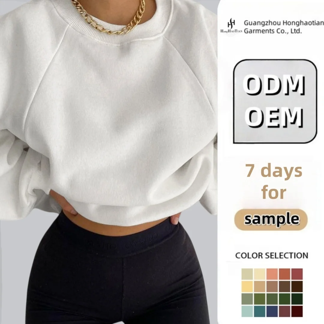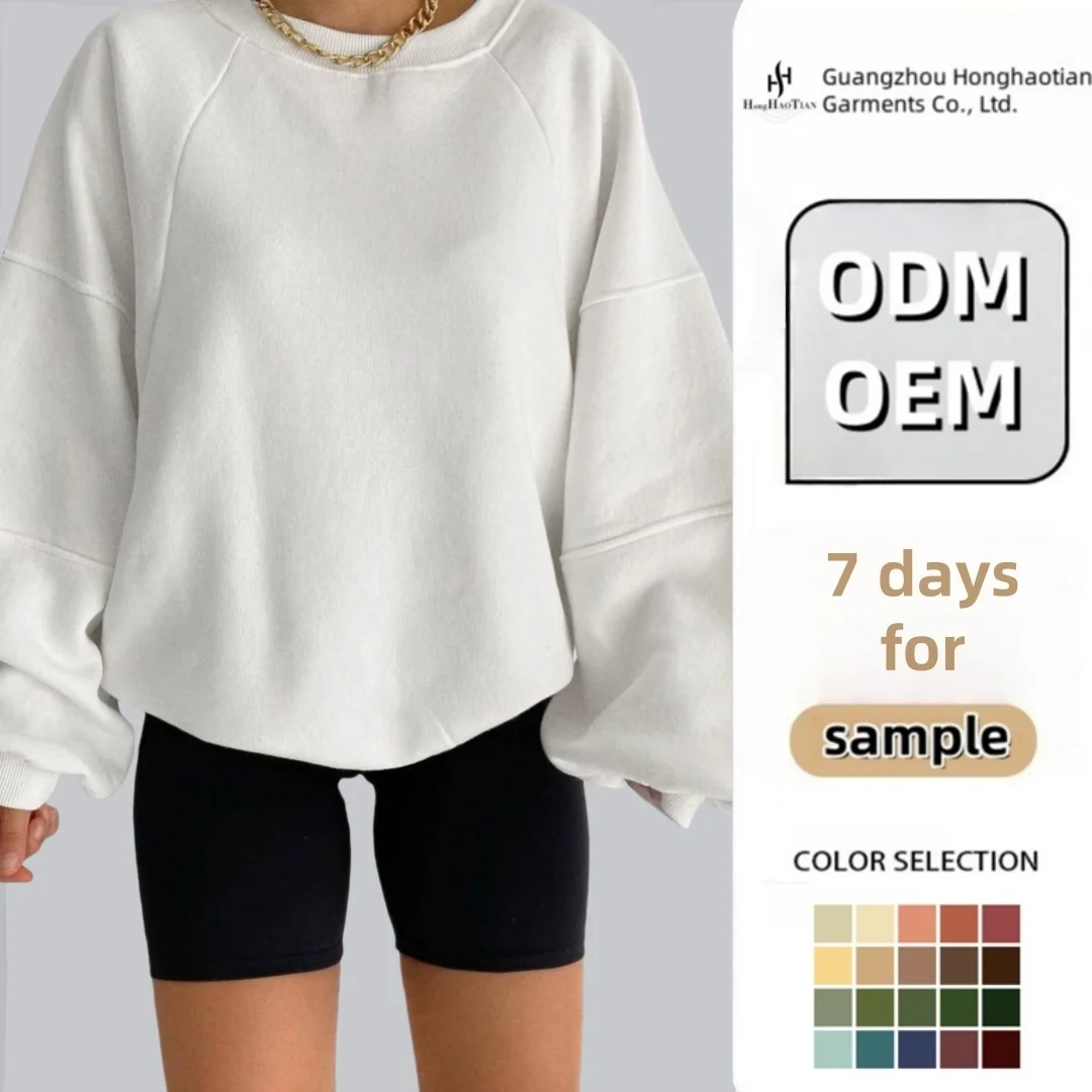 ODM OEM Custom Women's Oversized Pullover Hoodie Sweatshirt Casual Wear Solid Color Drop Shoulder Front Printed Autumn Winter