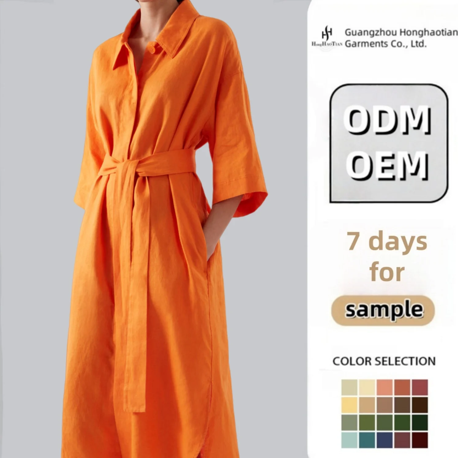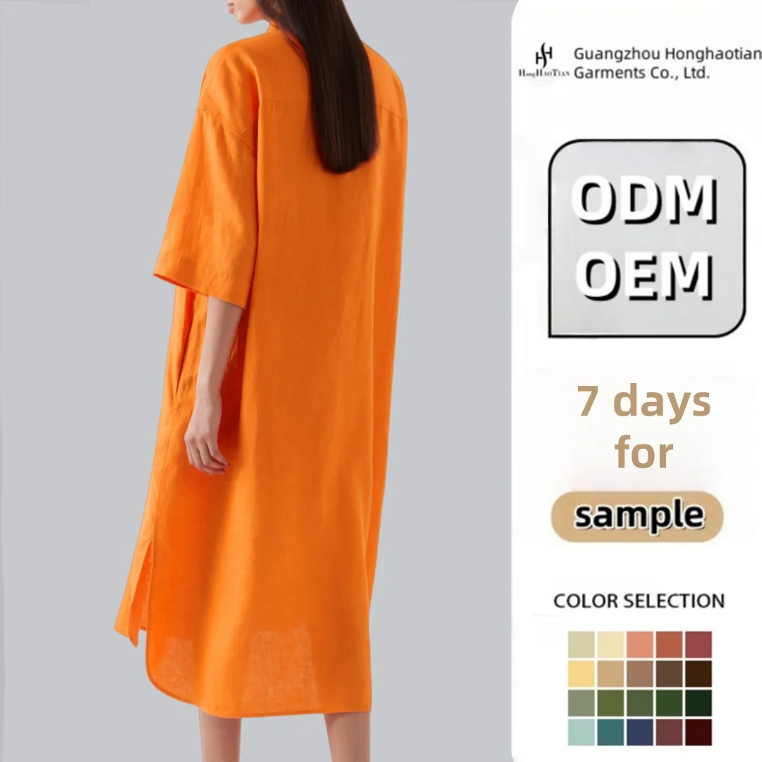 Garment Manufacturer Customized Hot Selling Women's Linen Casual Lapel Front Button Short Sleeved Women's Shirt Dress