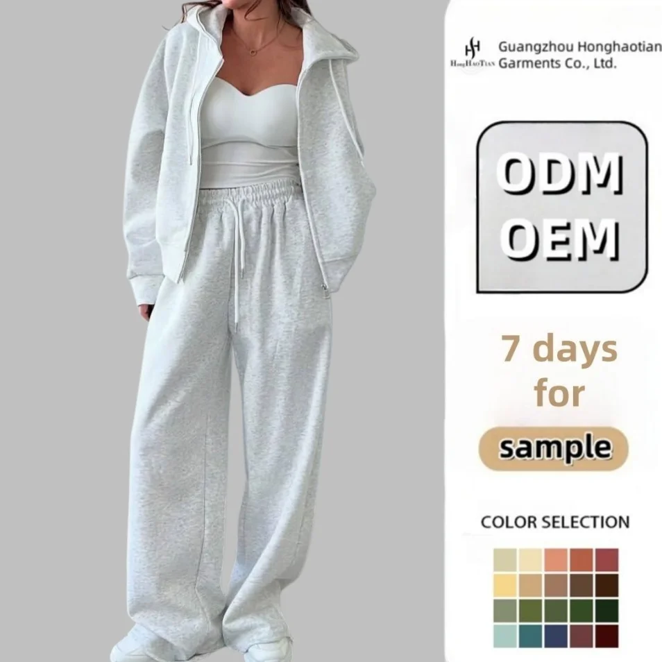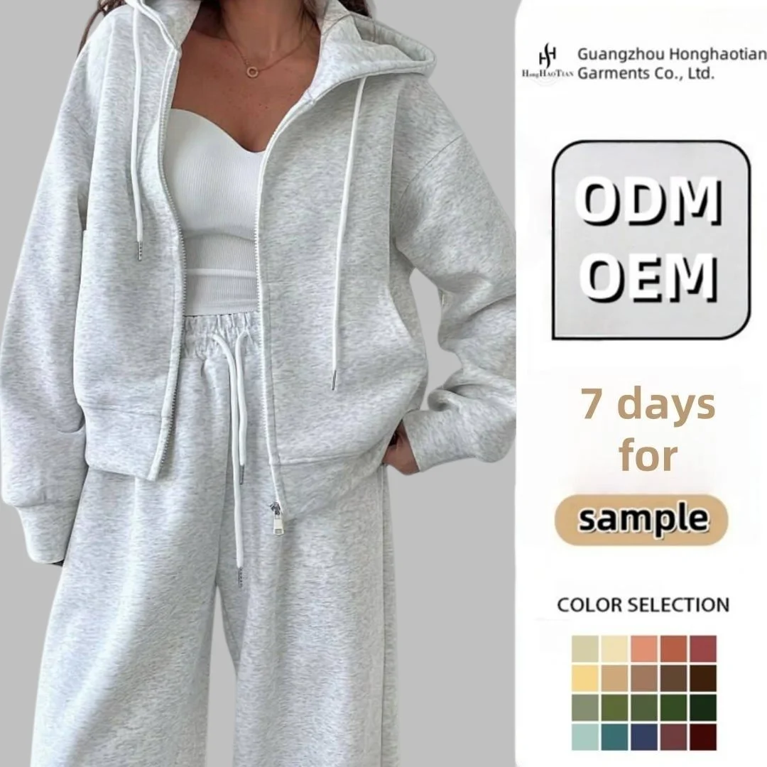 Custom Women's Clothing Heavy Weight Zip up Sweatsuits Tracksuit Latest Design Baggy Two Piece Zip up Hoodie and Sweatpants Set