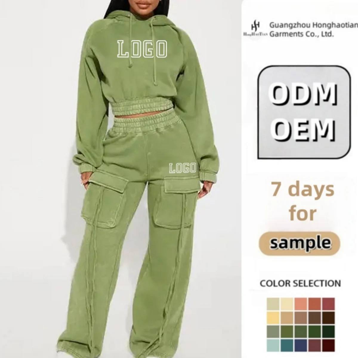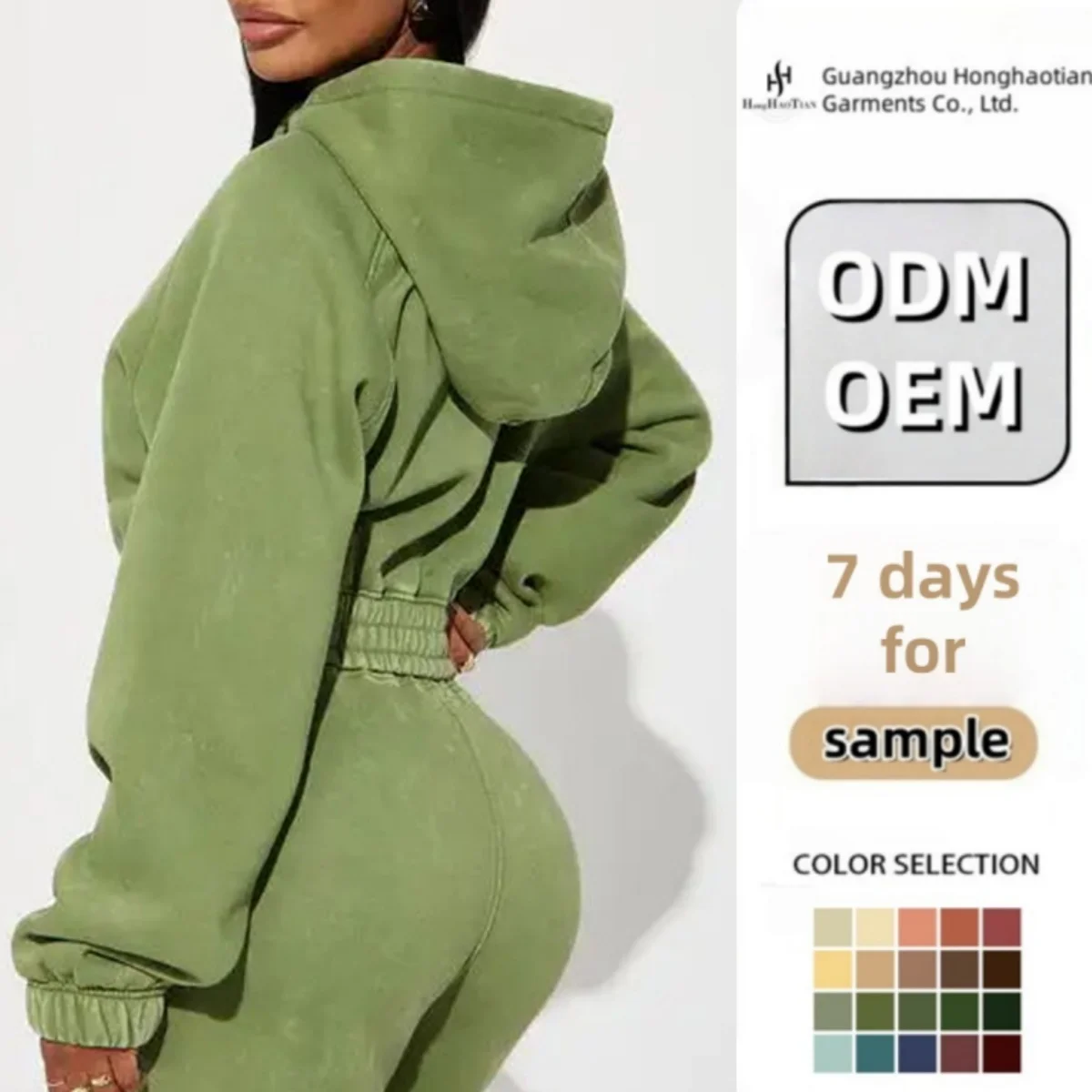 Custom Embroidery Washed Cropped Sport Street Wear Custom Logo Zip up Two 2 Piece Sweatpants and Hoodie Set Joggers Tracksuits