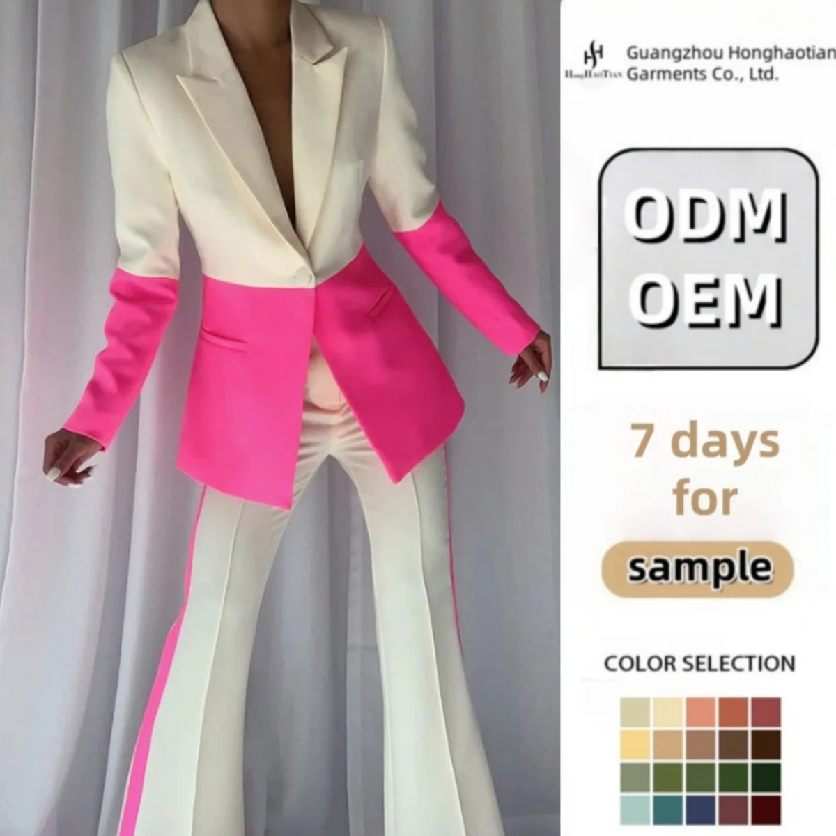 ODM OEM Custom High Quality New Women Clothing Outfits Spring One Button Color Block Blazer Suit Long Sleeve Two Piece Set