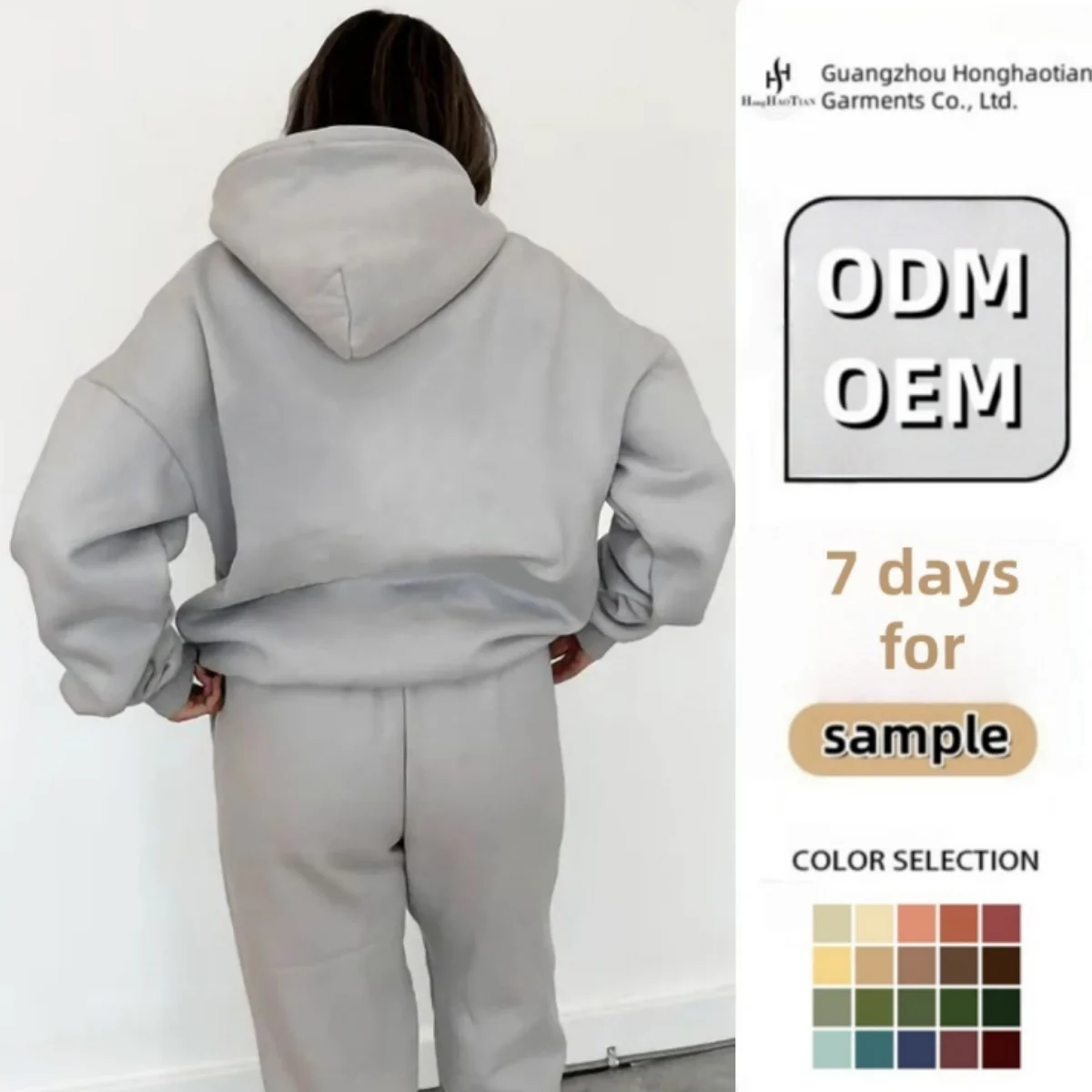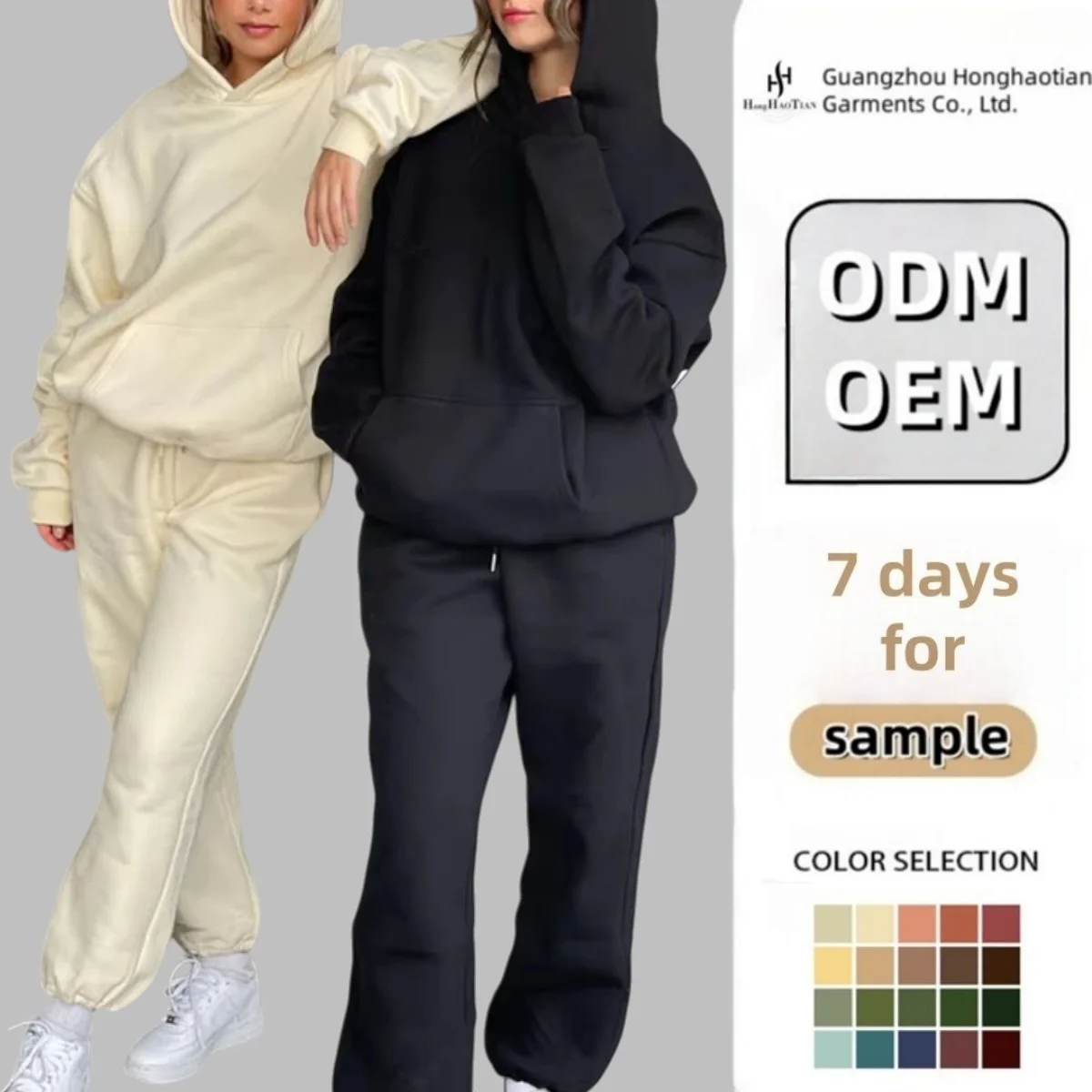 ODM OEM Custom Logo Jogging Suit Blank Cropped Hoodie Set Lounge Women Tracksuit 2 Two Piece Set for Women Jogger Sweatpants