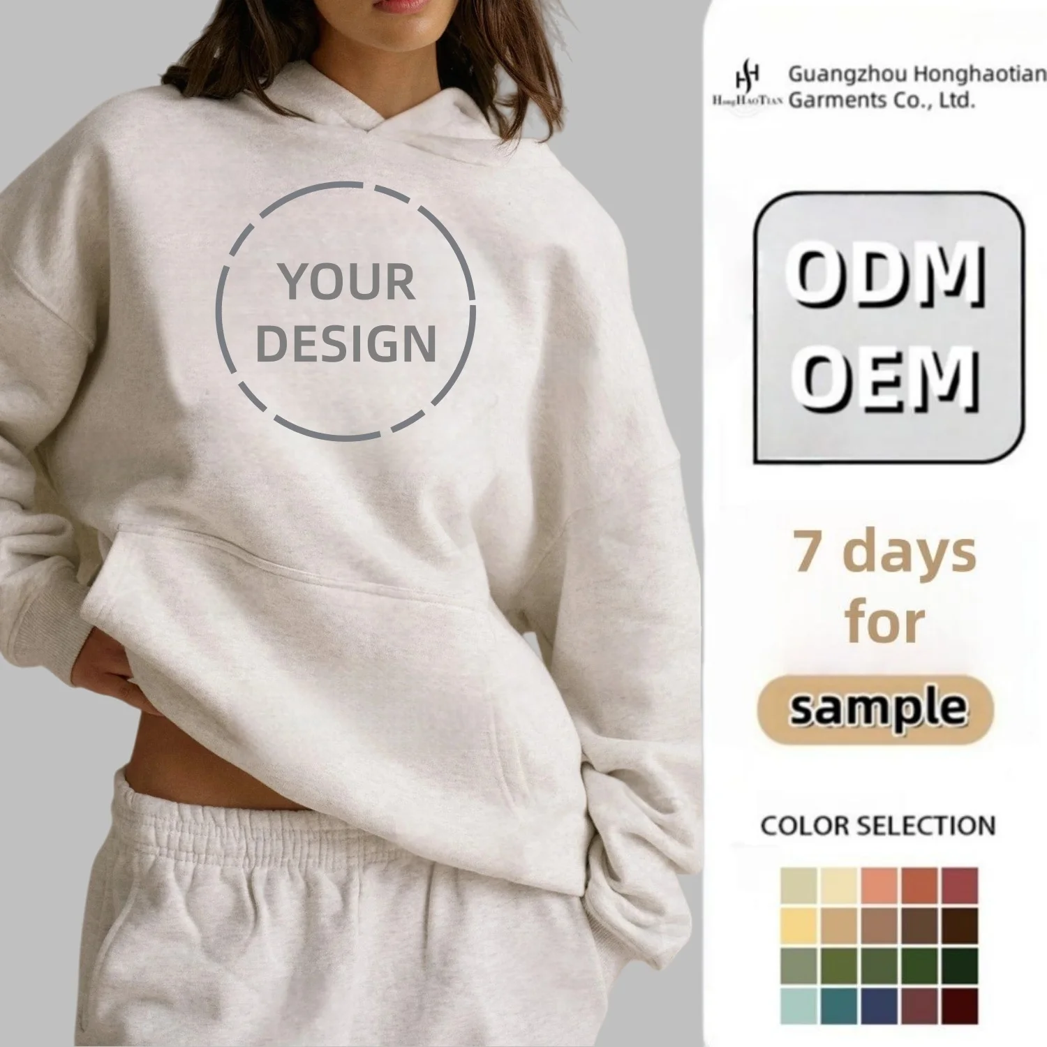 ODM OEM Custom Oversized Embroidered French Terry Baggy Hoodie Cotton Fleece Jumper Puff Print CrewNeck Sweatshirt for Women