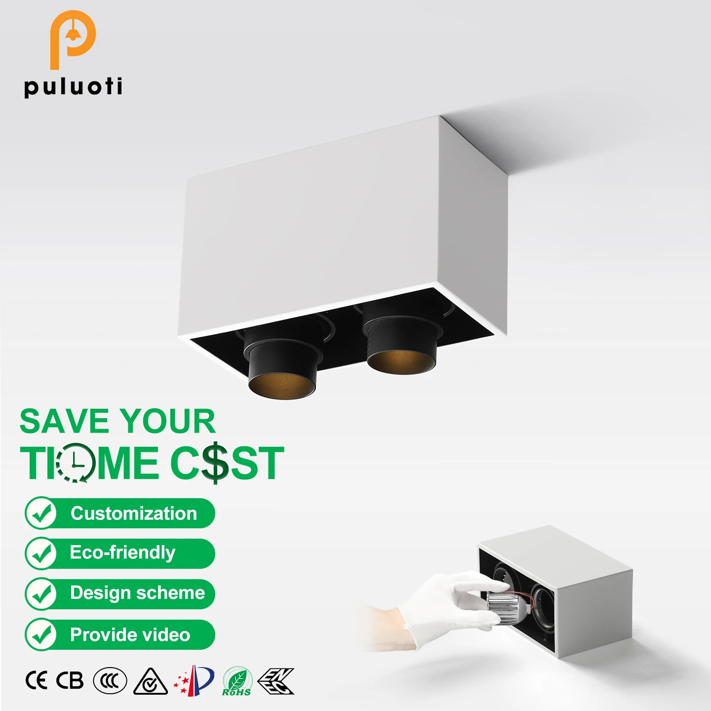 360 Degree Gyro Adjustable Cob LED Spotlight Modern Aluminum Square Surface Mounted Ceiling Dimmable Surface Mounted Down Light