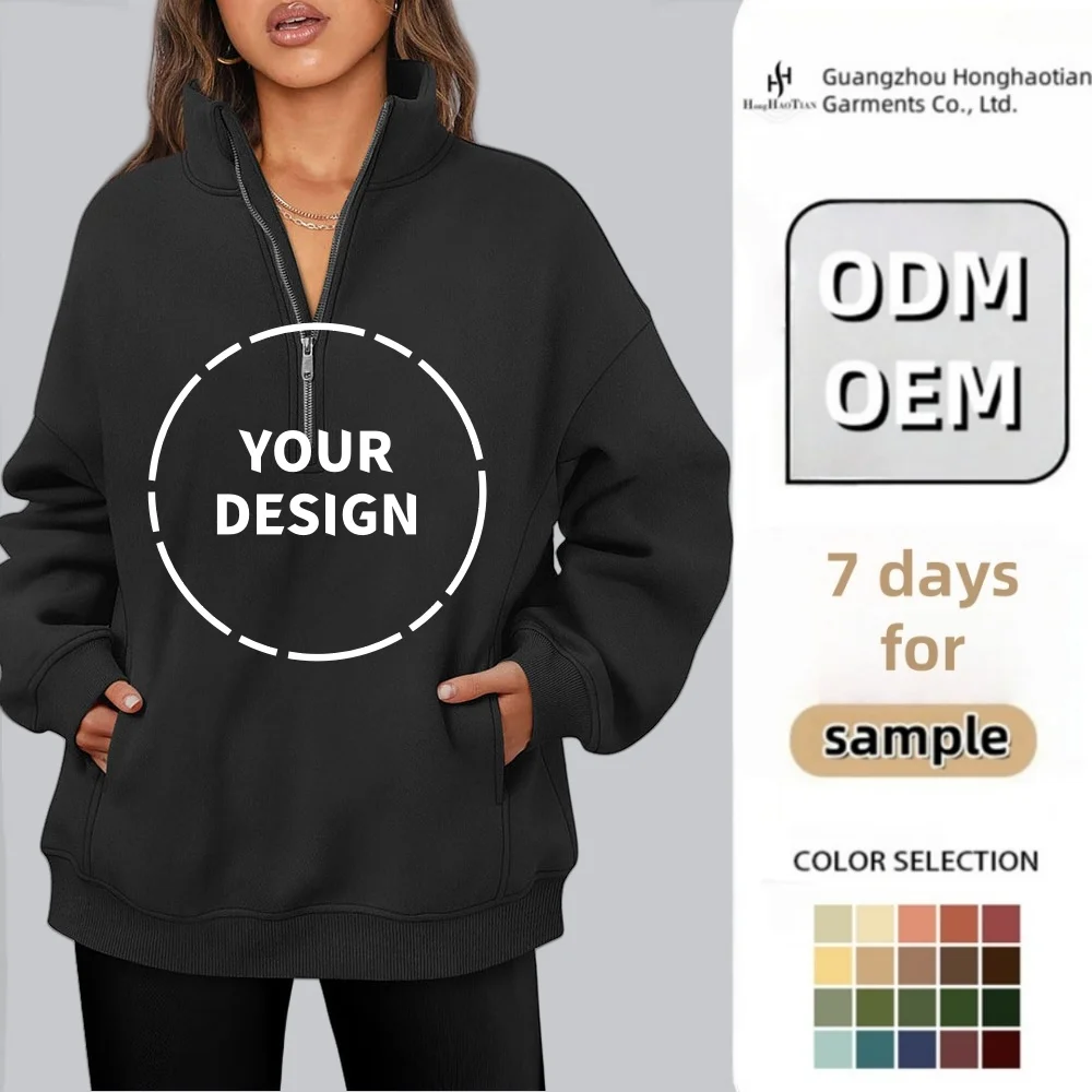 Manufacture ODM Custom Logo Half Zip Sweatshirt Long Sleeved Women's Hoodies Stand Collar Solid Color Pullover