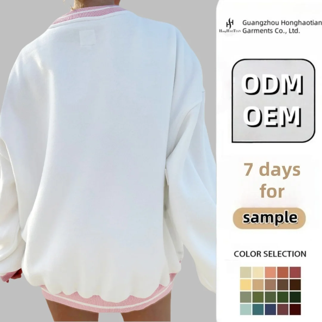ODM Cotton Fleece Crew Neck Oversized Sweatshirt Embroidered Drop Shoulder Crewneck Sweatshirt for Women Clothing Manufacturers