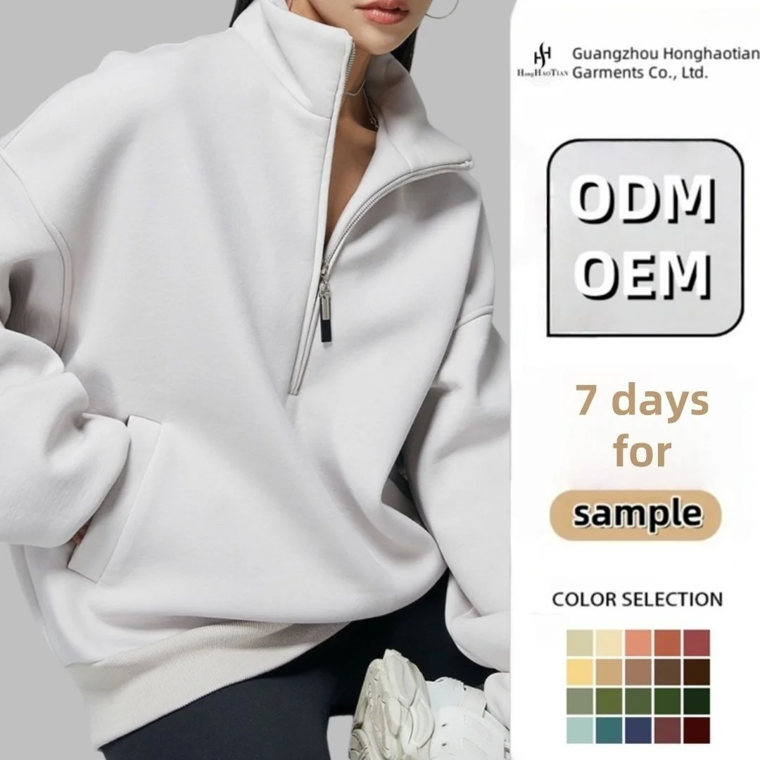 Wholesale Custom Manufacturer Hoodie Femmes Sweatshirts Plain 1/4 Zip Sweater French Terry Zip Ups Hoodies Sweater for Women