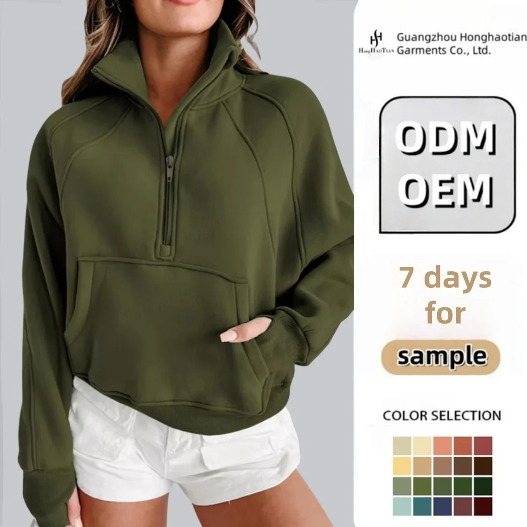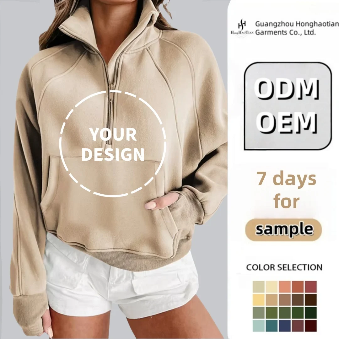 Wholesale ODM Custom Embroidered Front 280Gsm Knitted Blank Plain Pullover Stand Collar Ribbed Fleece Lined Half Zip Sweatshirt