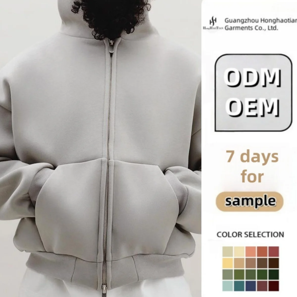 ODM Luxury Plain 600gsm Blank Thick Heavyweight Cotton 100% Blend French Terry Hoodie Cropped Double Zipper Custom Zip up Hoodie