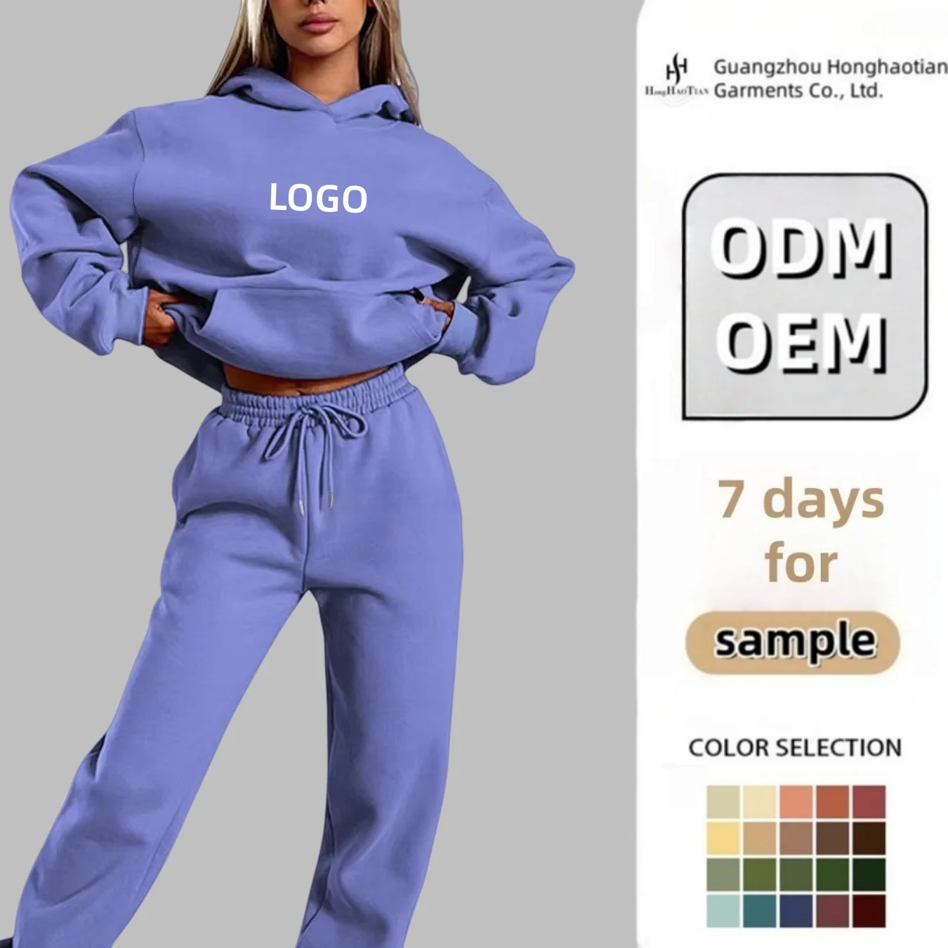 ODM Custom High Quality Embroidery Printed Sweatshirt Cotton Plus Size Women's Hoodies & Sweatshirts Hoodies and Sweat Pants Set