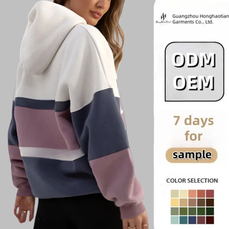 ODM Custom Embroidered Color Block Hoodie Streetwear High Quality Sport Gym Fleece Pullover 100% Cotton Oversized Women's Hoodie