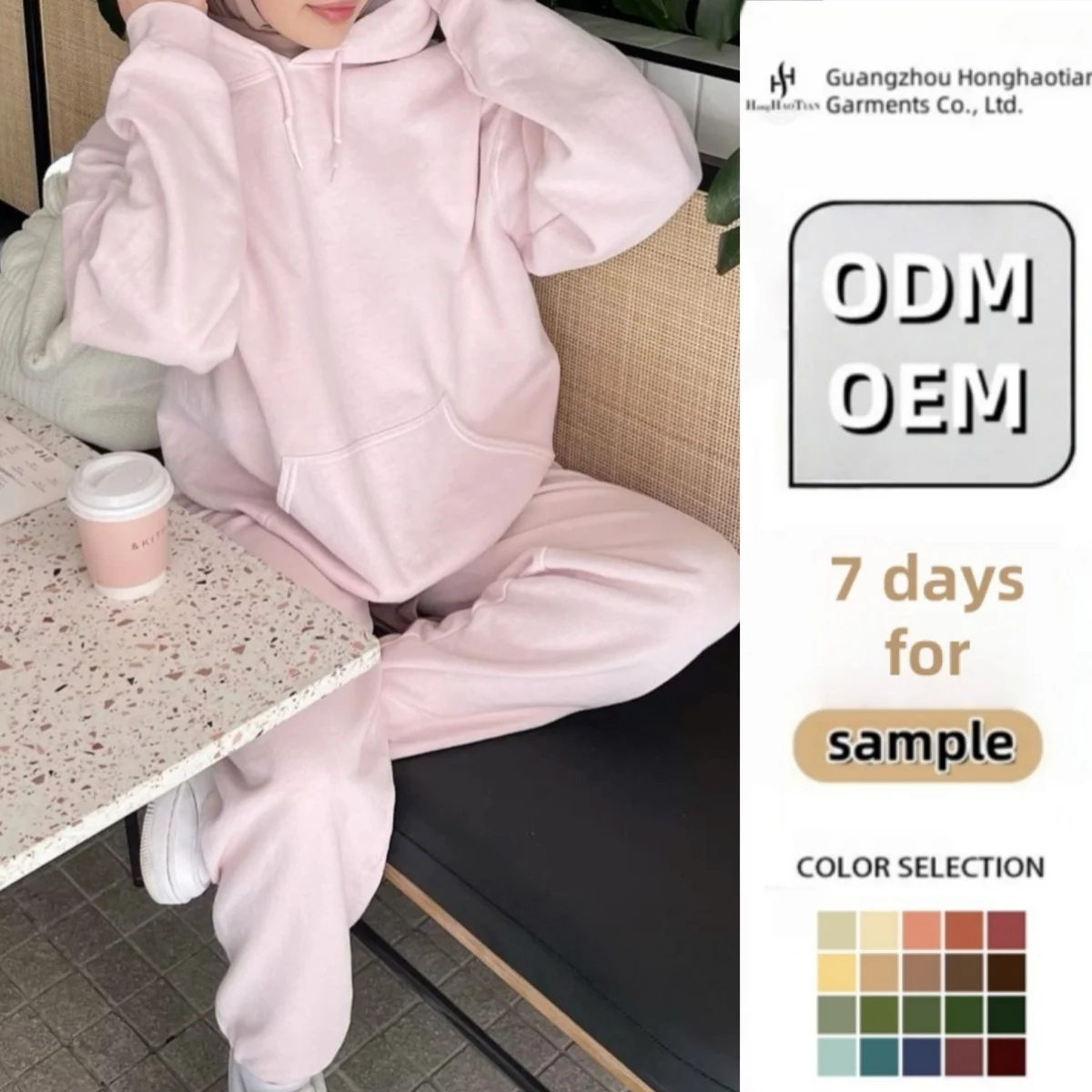 Clothing Brand Manufacturers Custom Pink Women's Sets Hoodie Tracksuit Wholesale Women Two Piece Sweatpants and Hoodie Set