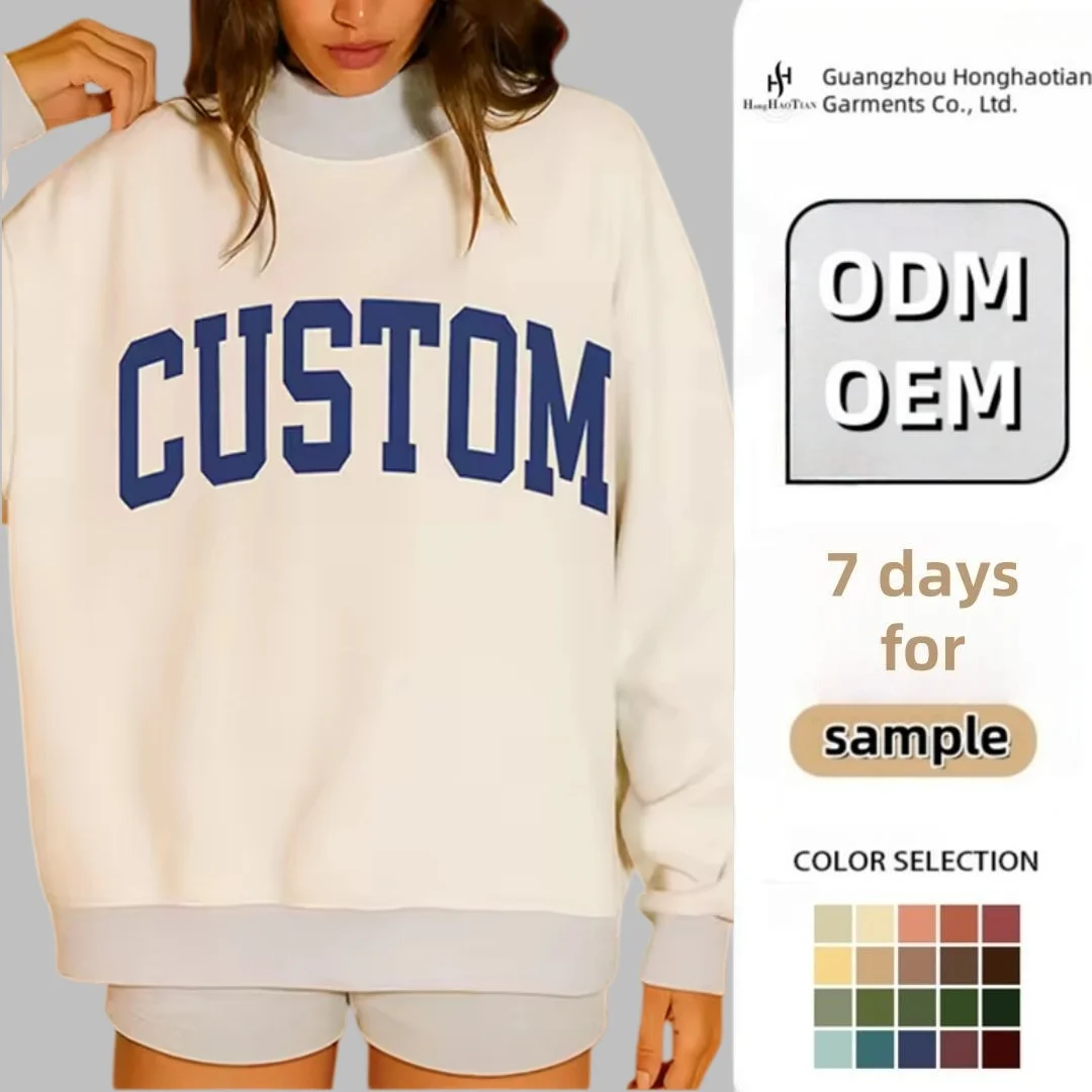 ODM Custom Logo High Quality Blank Stitch Plain 100% Cotton French Terry Varsity Oversized Women Reversible Mock Neck Sweatshirt