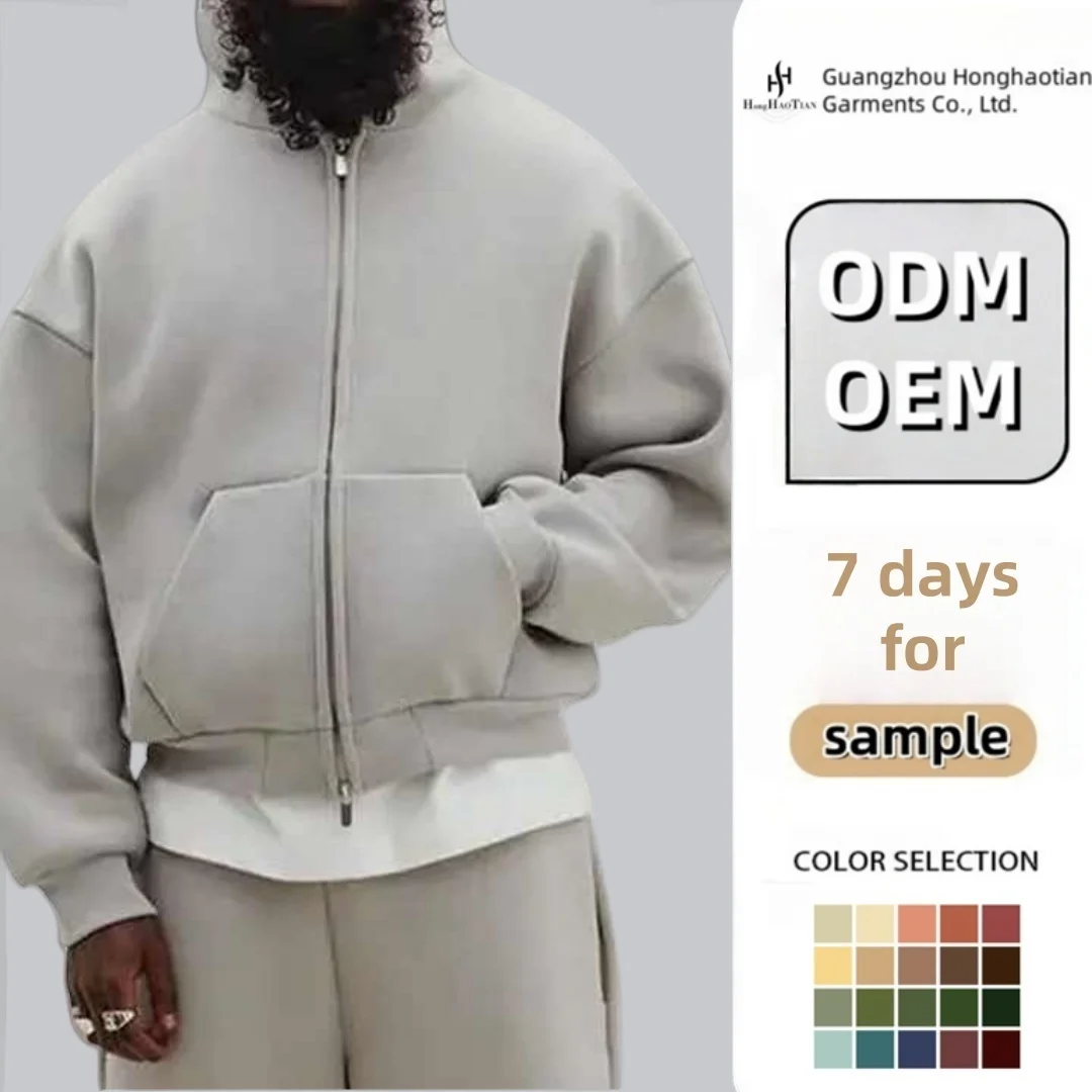 High Quality Cotton Boxy Zipup Hoodie Heavyweight Oversized Double Zipper Hoodies Custom Men Cropped Full Zip up Hoodie