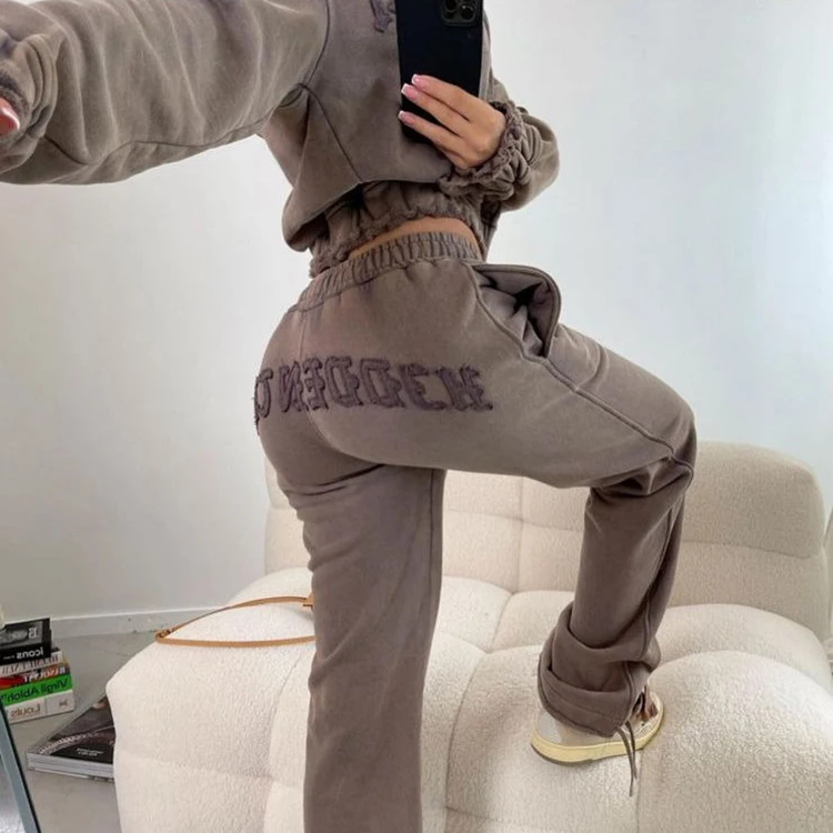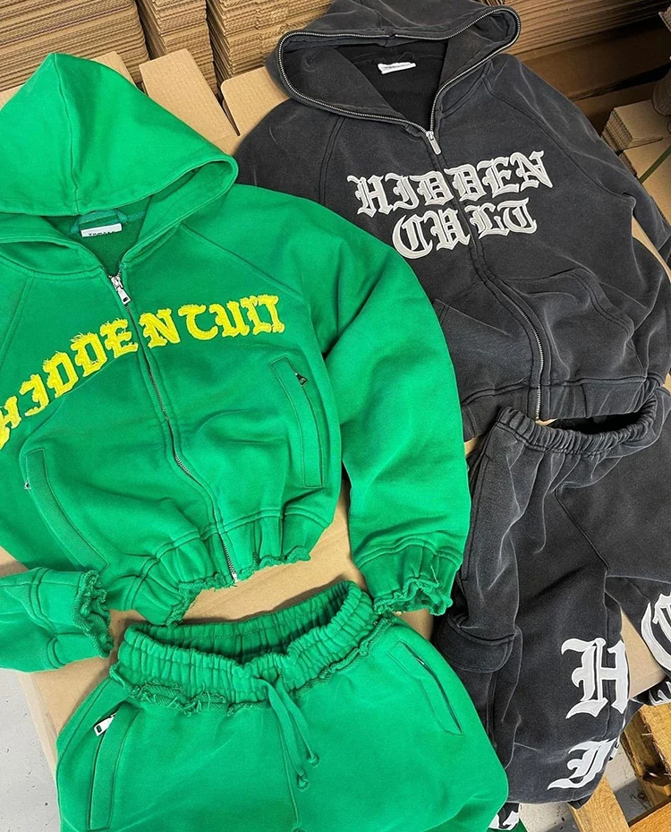 Custom Heavyweight Vintage Acid Wash Sun Faded Distressed Patch Applique Embroidery Boxy Cropped Zip up Hoodie