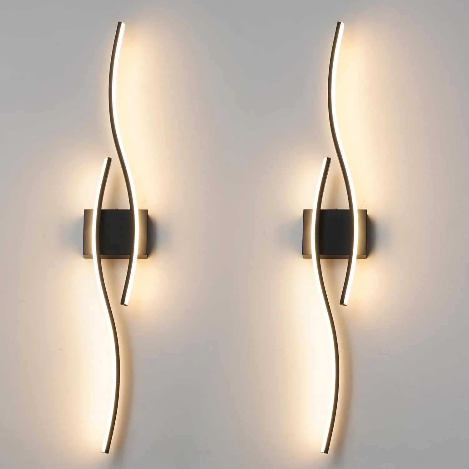 JACKSUN Modern Metal Gold Black LED Wall Sconce Lighting Plug in Wall Lamp Dimmable with Remote Control 39.4inch Length