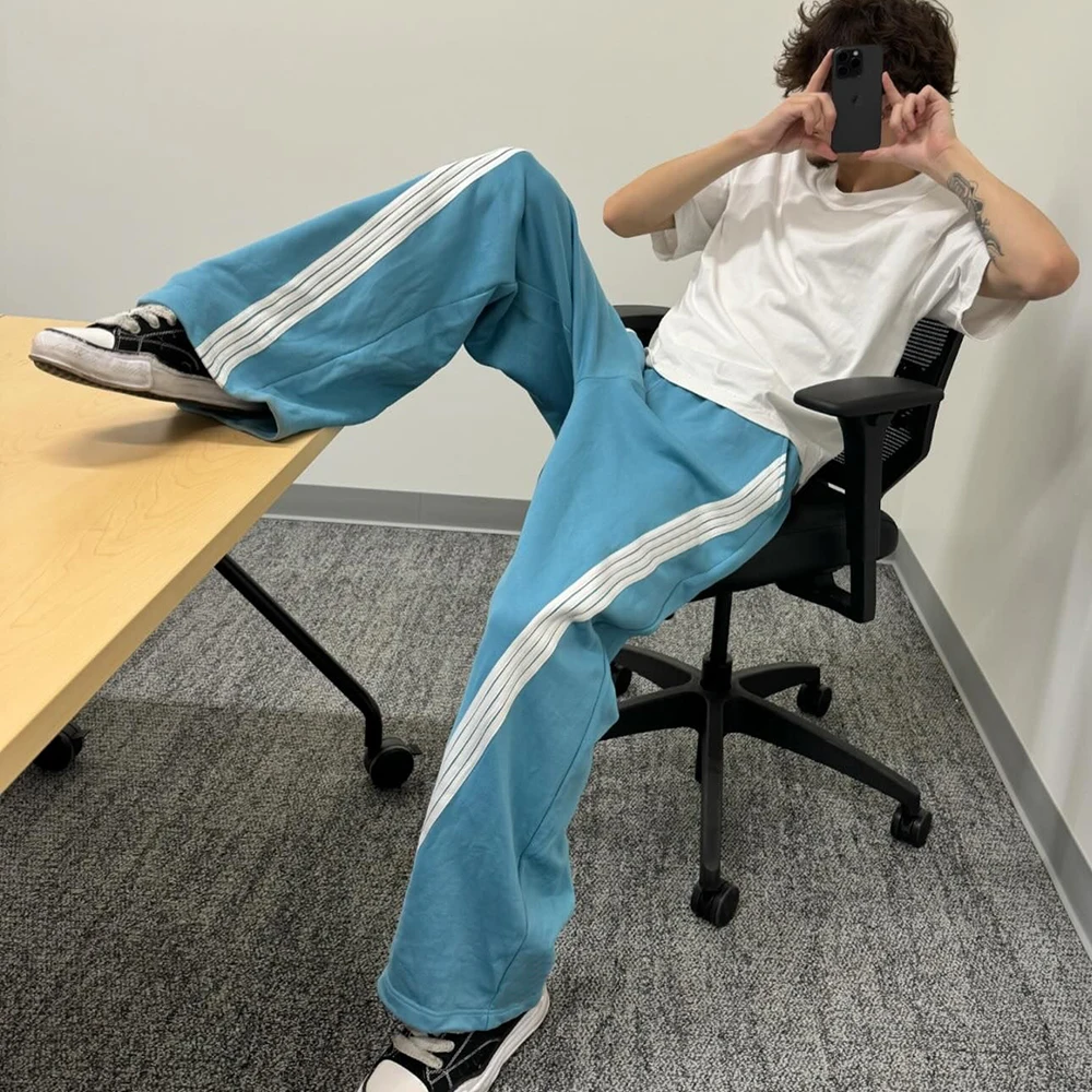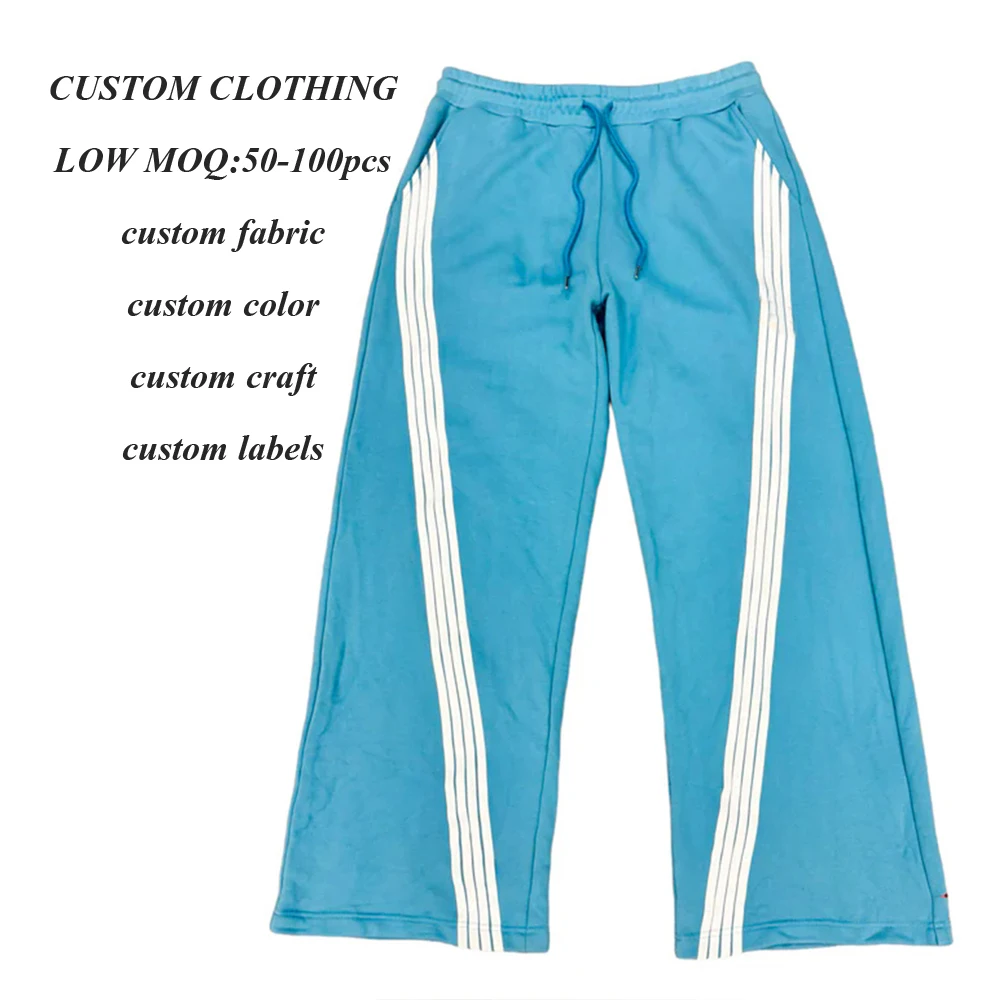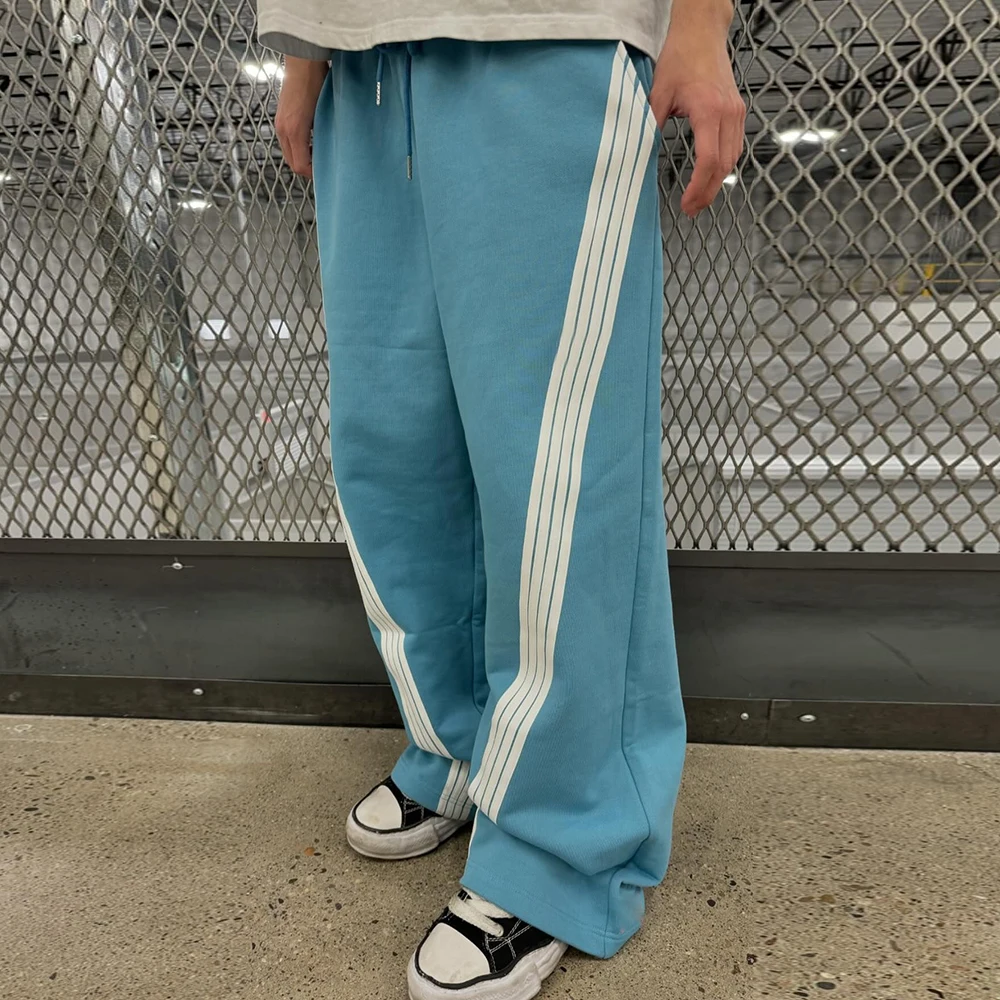Clothing Manufacturer Men's 100% Cotton Heavy Sweatpants Elastic Waist Men Striped Trimmed Oversized Wide Leg Baggy Sweatpants