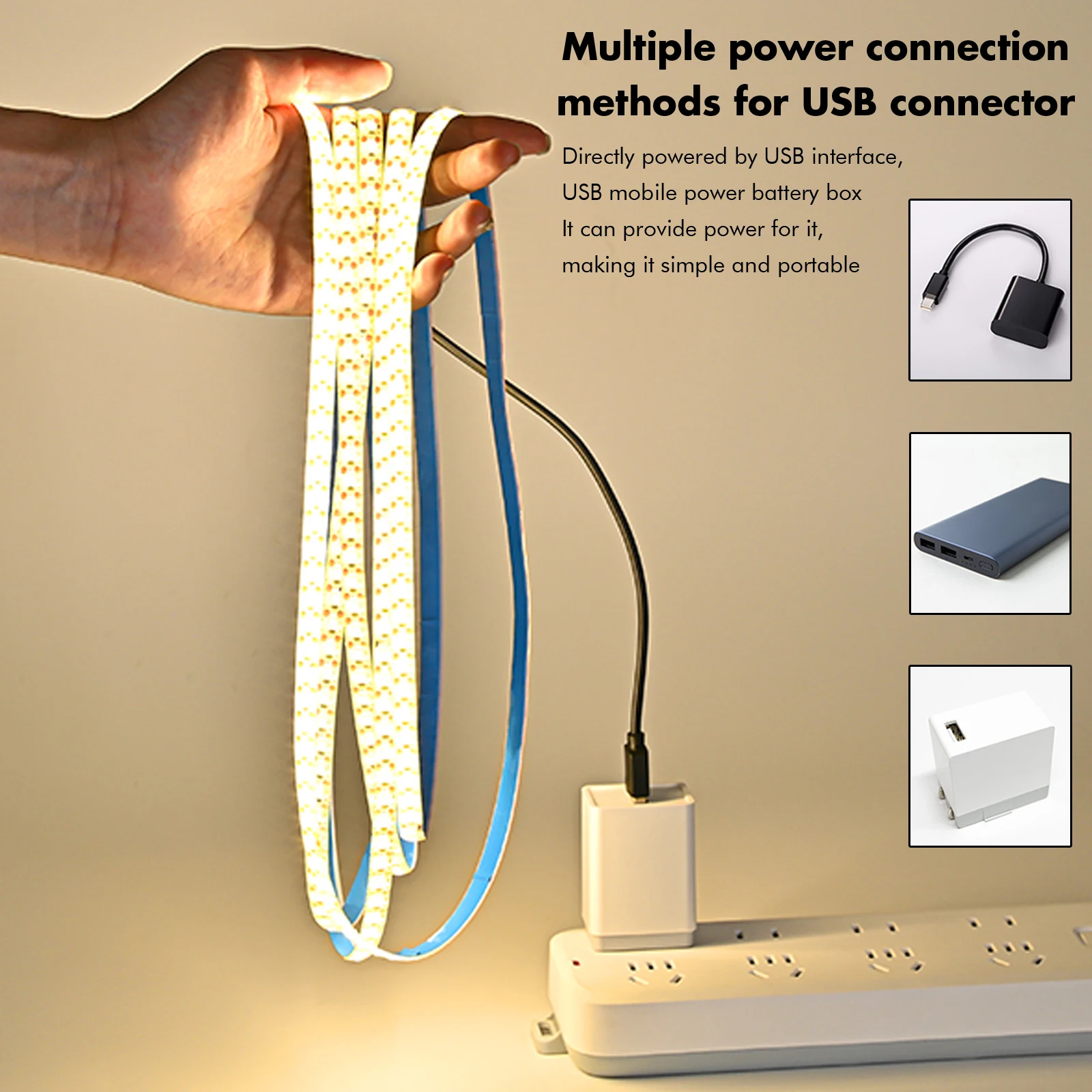 Vertak Wholesale 1m 3m 4m 5m Led Light Tape 2835 SMD 8mm 5v Flexible Led Strip for Mirror Kitchen Cabinet With USB
