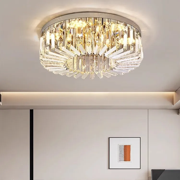 JACKSUN K9 Led Crystal Ceiling Light Round Golden Stainless Steel Flush Mount Chandelier for Living Room Decor Lighting 60x19cm