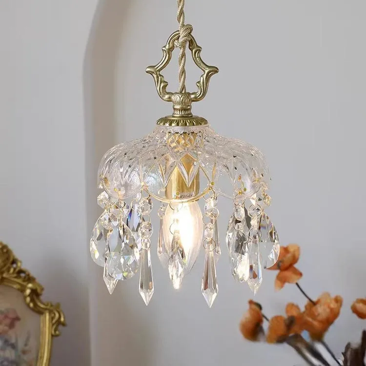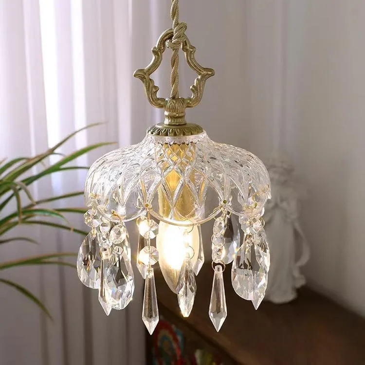 JACKSUN French Modern Brass Color Crystal Pendant Light Luxury Entryway Corridor Lighting European Minimalist Bedside Lamp