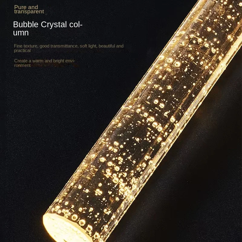 JACKSUN Small LED Gold Crystal Bubble Chandelier Kitchen Island 3W Aluminum Long Pendant Light Dimmable 2700K-6000K
