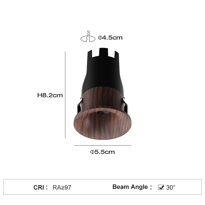 Cut Out 45MM Recessed Aluminum LED Spotlight Walnut Brown 3 Colors Ra>97 Vintage Style Indoor Downlight with 10-Year Warranty