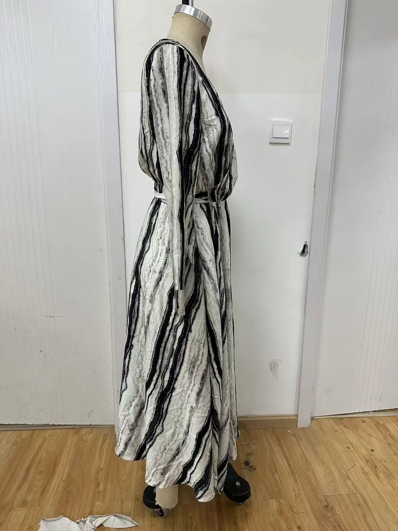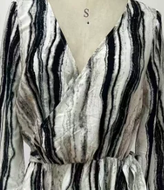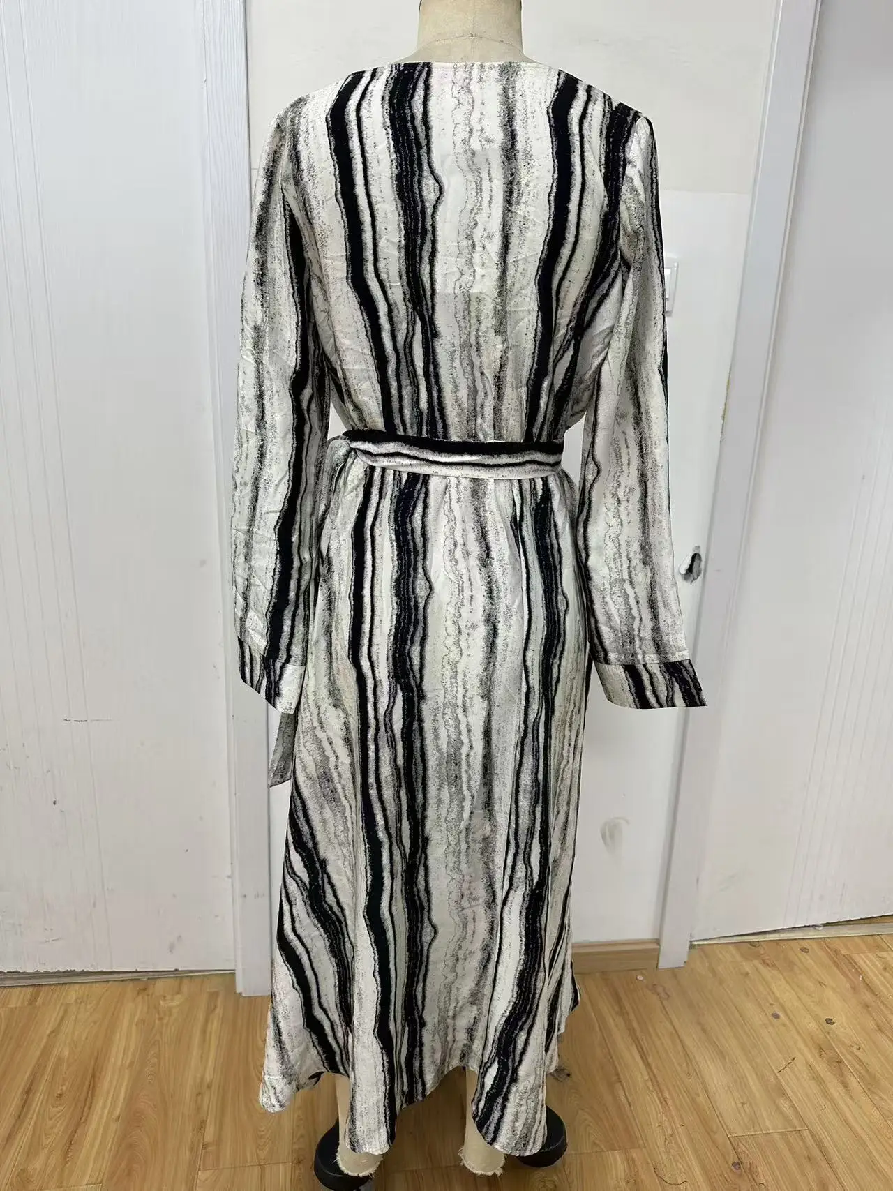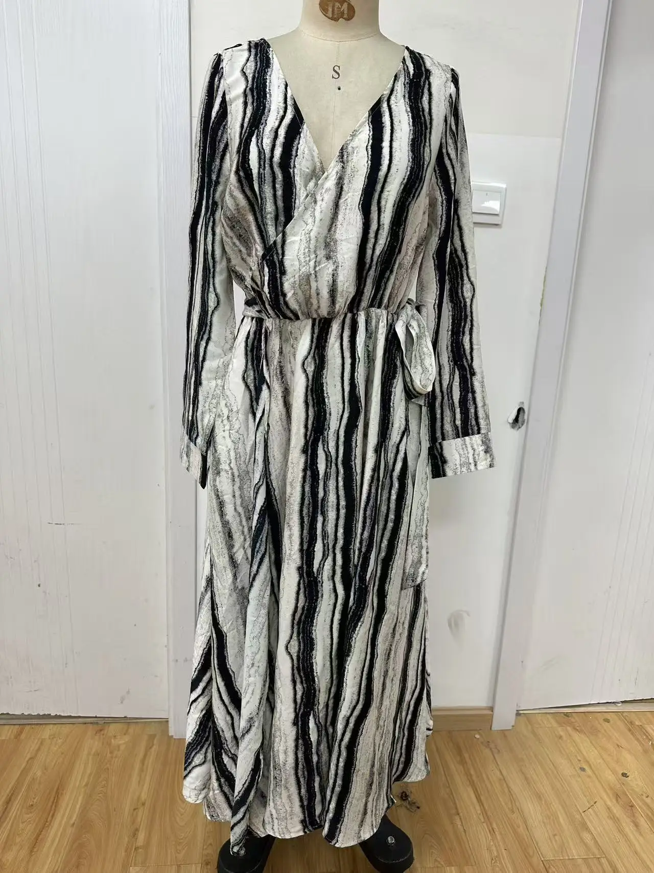 Women's Casual Spring and Autumn New Striped Long Sleeved V-neck Woven Dress