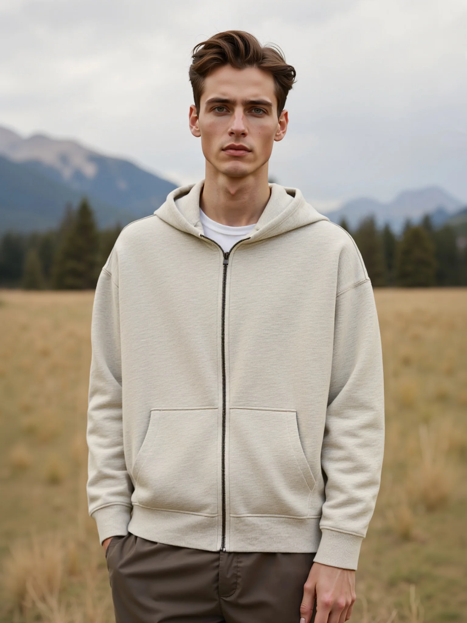 Men's Zip-Up Pullover Fleece Hoodie 100% Solid Hooded for Winter Season