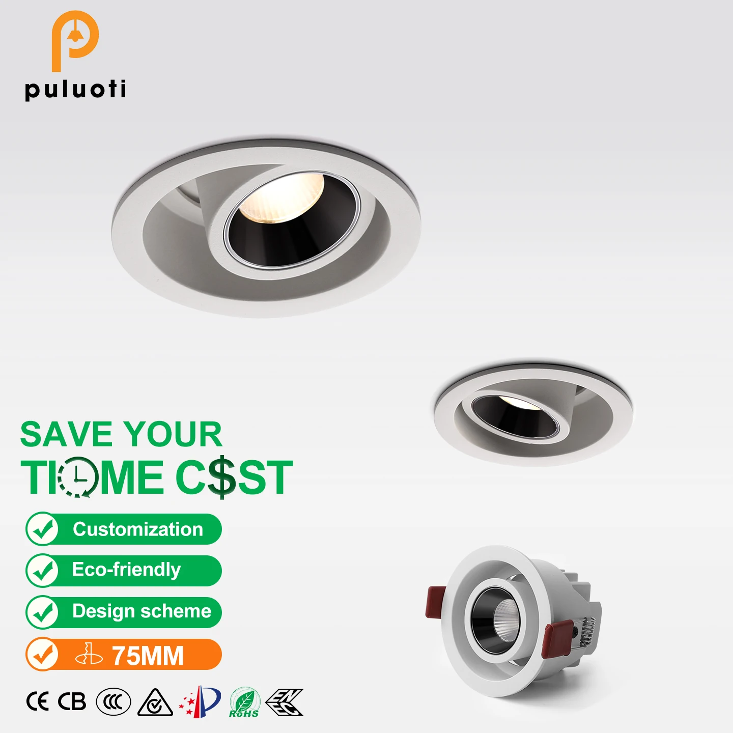 Recessed Spot Light with 75mm Aperture, Available 5W/7W/10W Options, Adjustable Angle, Ideal for Diverse Indoor Lighting Needs