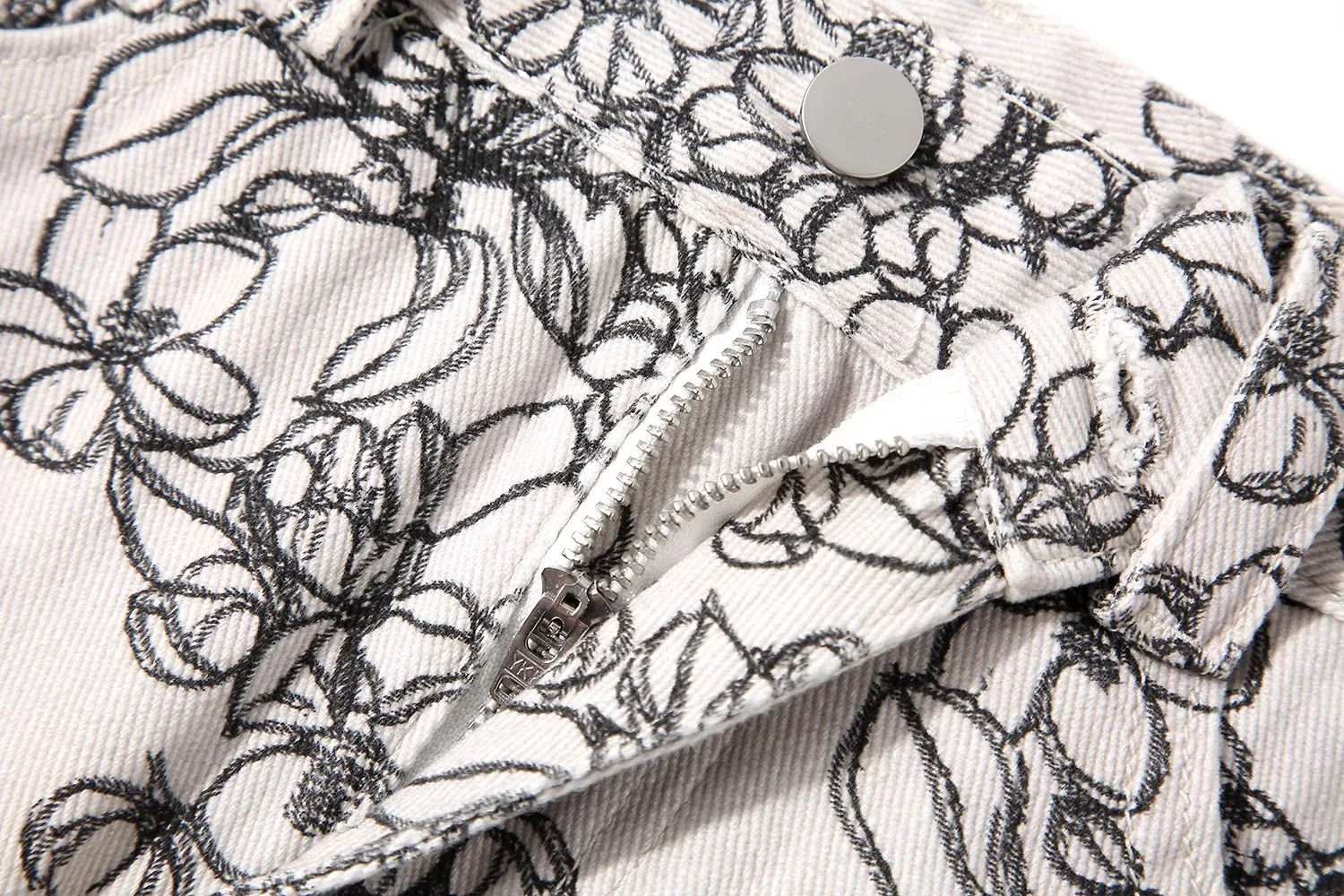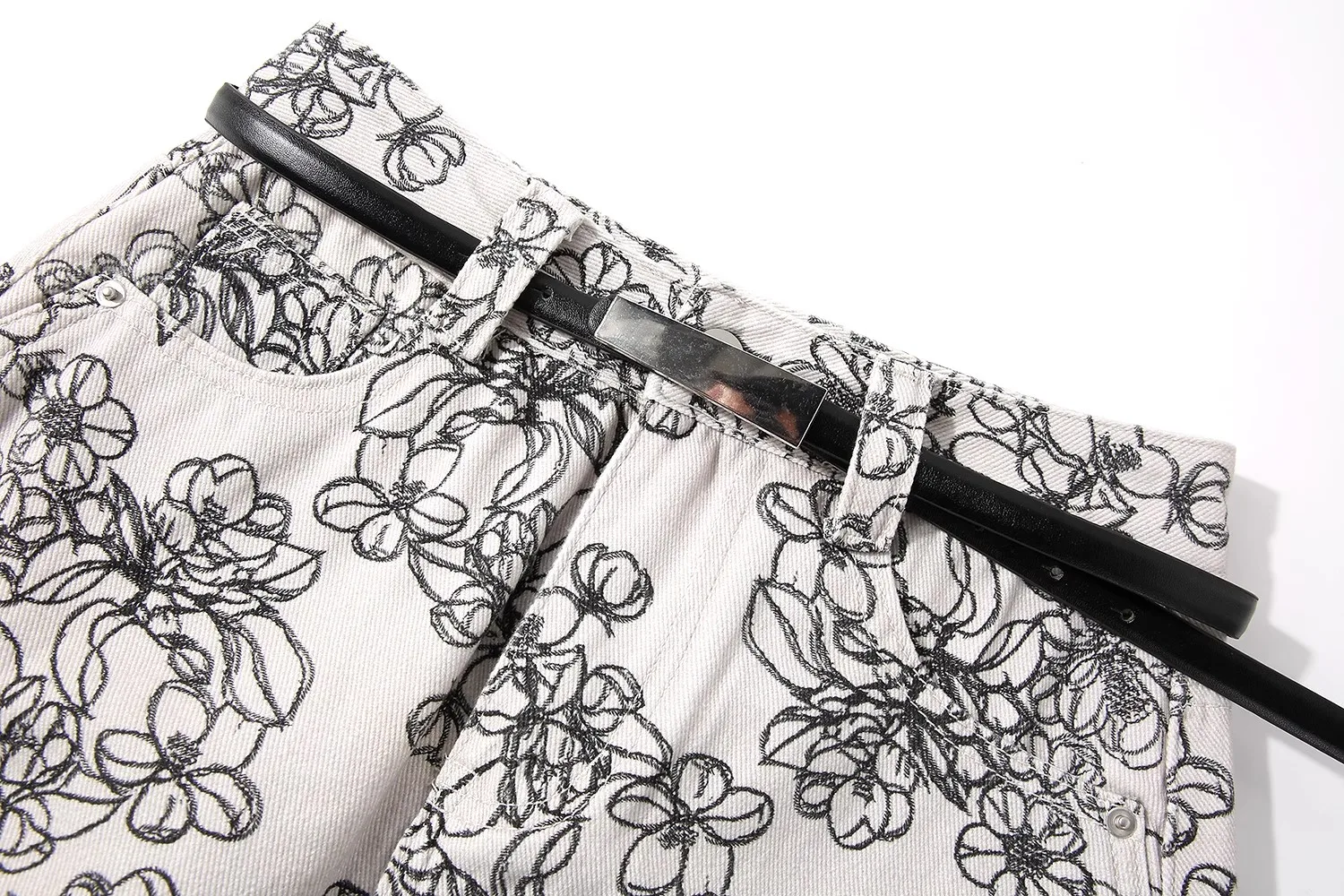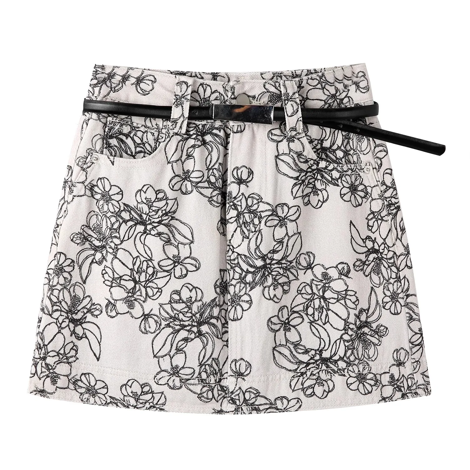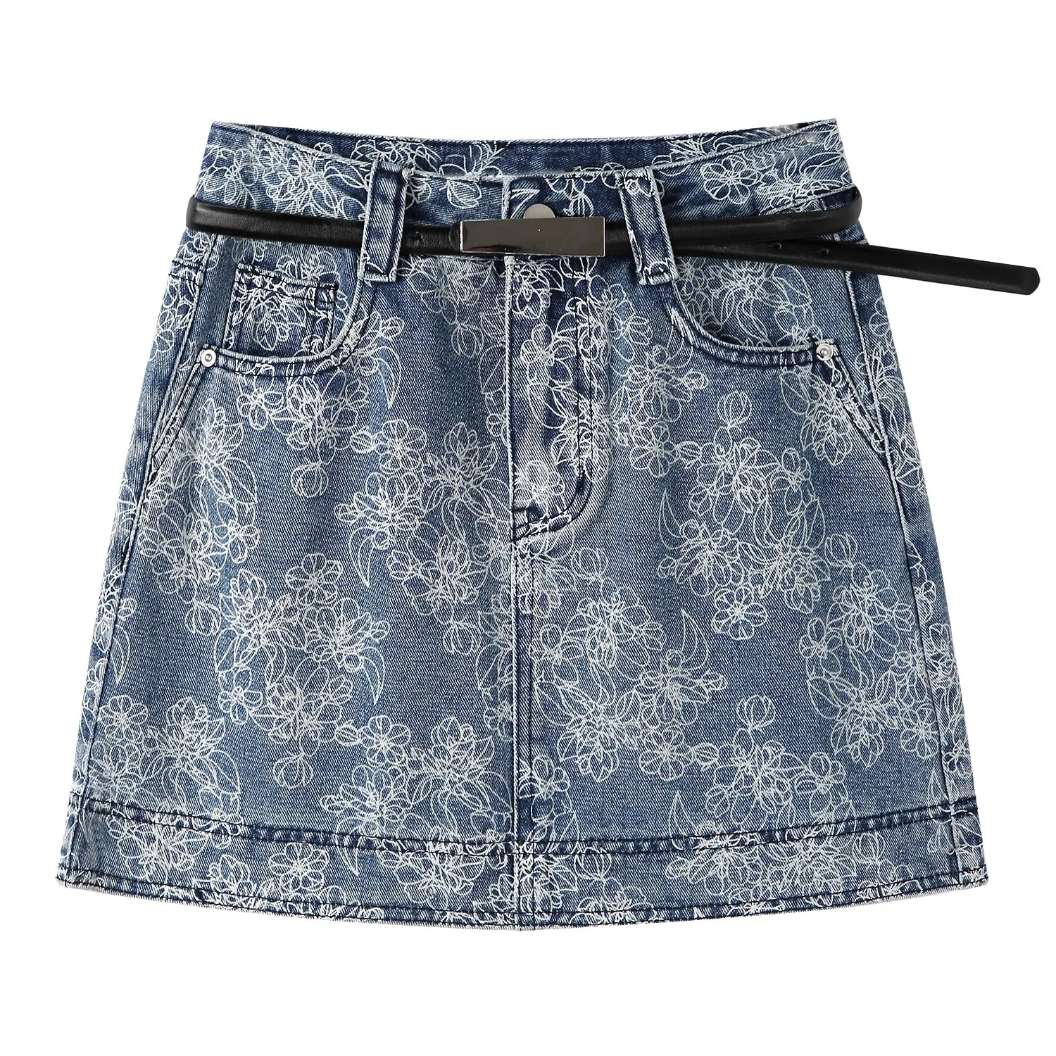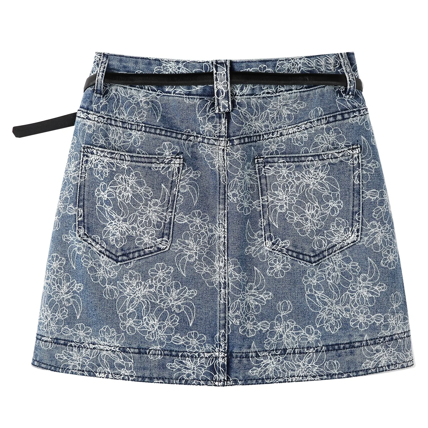 Fashionable Retro Printed Denim Empire Waist A-Line Mini Skirt for Women Sweet Style Eco-Friendly Breathable Unique Blue