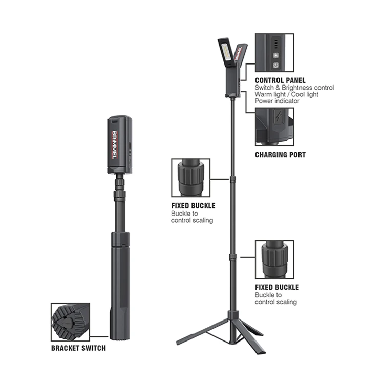 Vertak Rechargeable Battery Power Bright Flashlight Outdoor Camping Lights Flood Flash Light Cordless Tripod Led Work Light