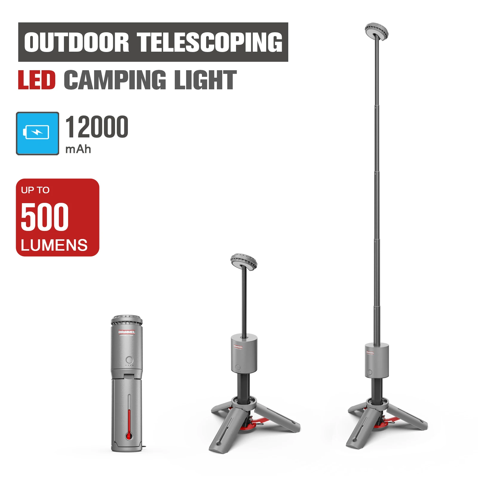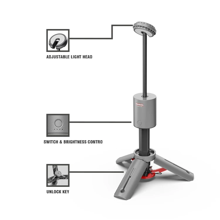 Vertak Portable Dustproof Waterproof Rechargeable Lithium Battery Work Light Lamp Telescopic Tripod Cordless Led Camping Light