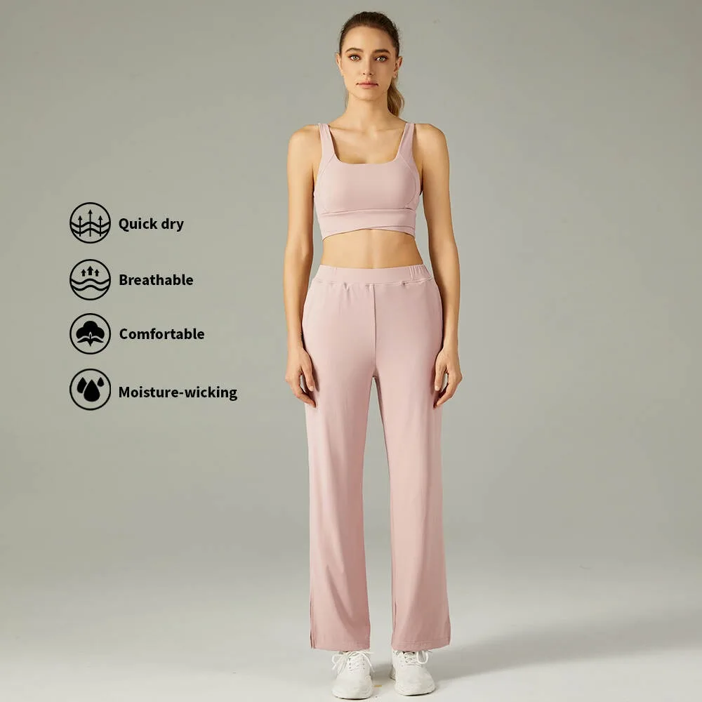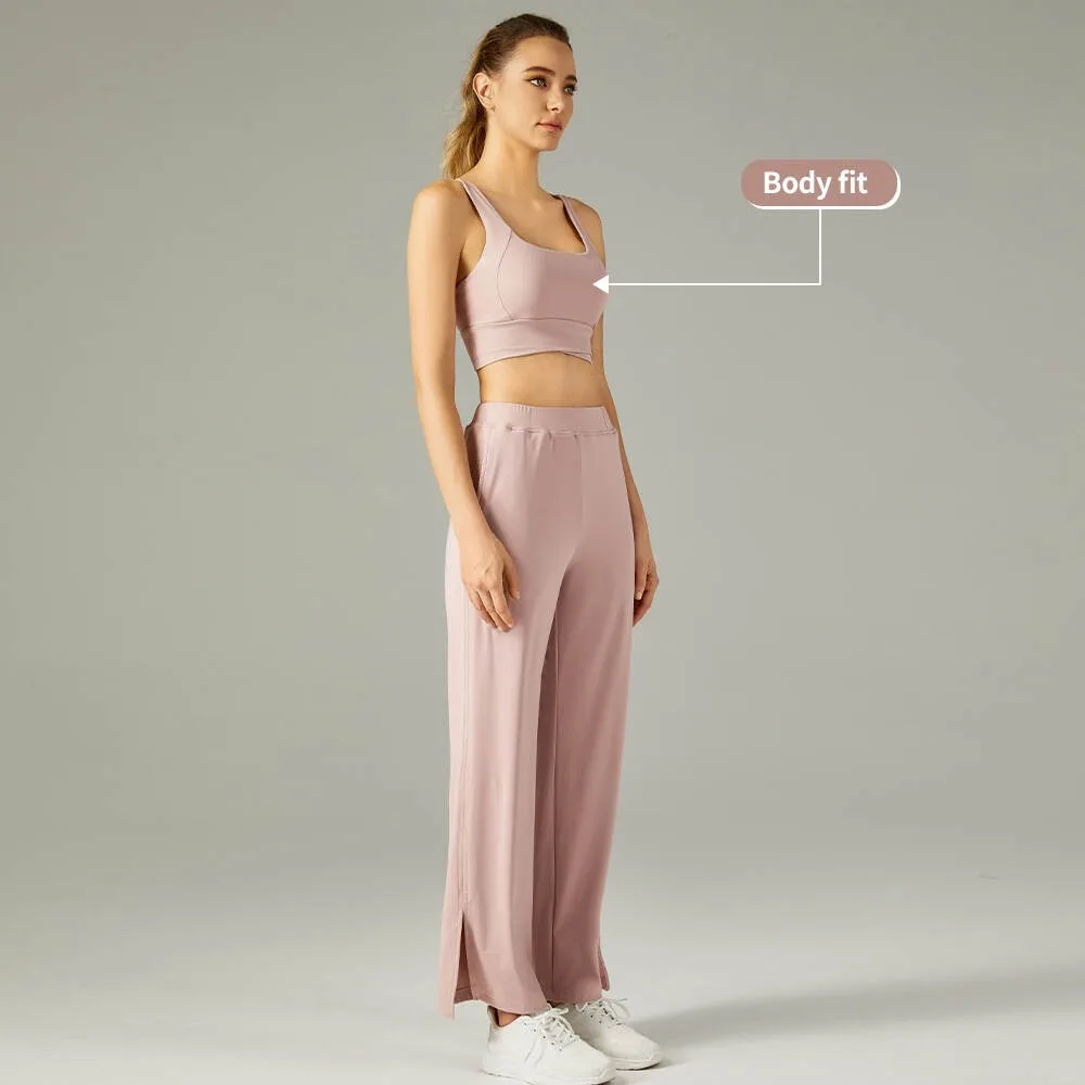 Hot Selling Factory Sexy Yoga Wear Set Sports Bra Plited Flared Pants Custom Logo