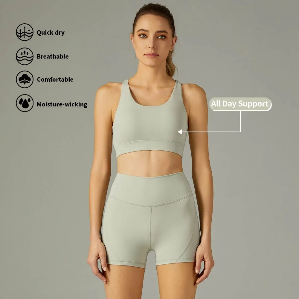 Hot Selling Sleeveless Yoga Wear Set Sports Bra Biker Shorts Custom Logo