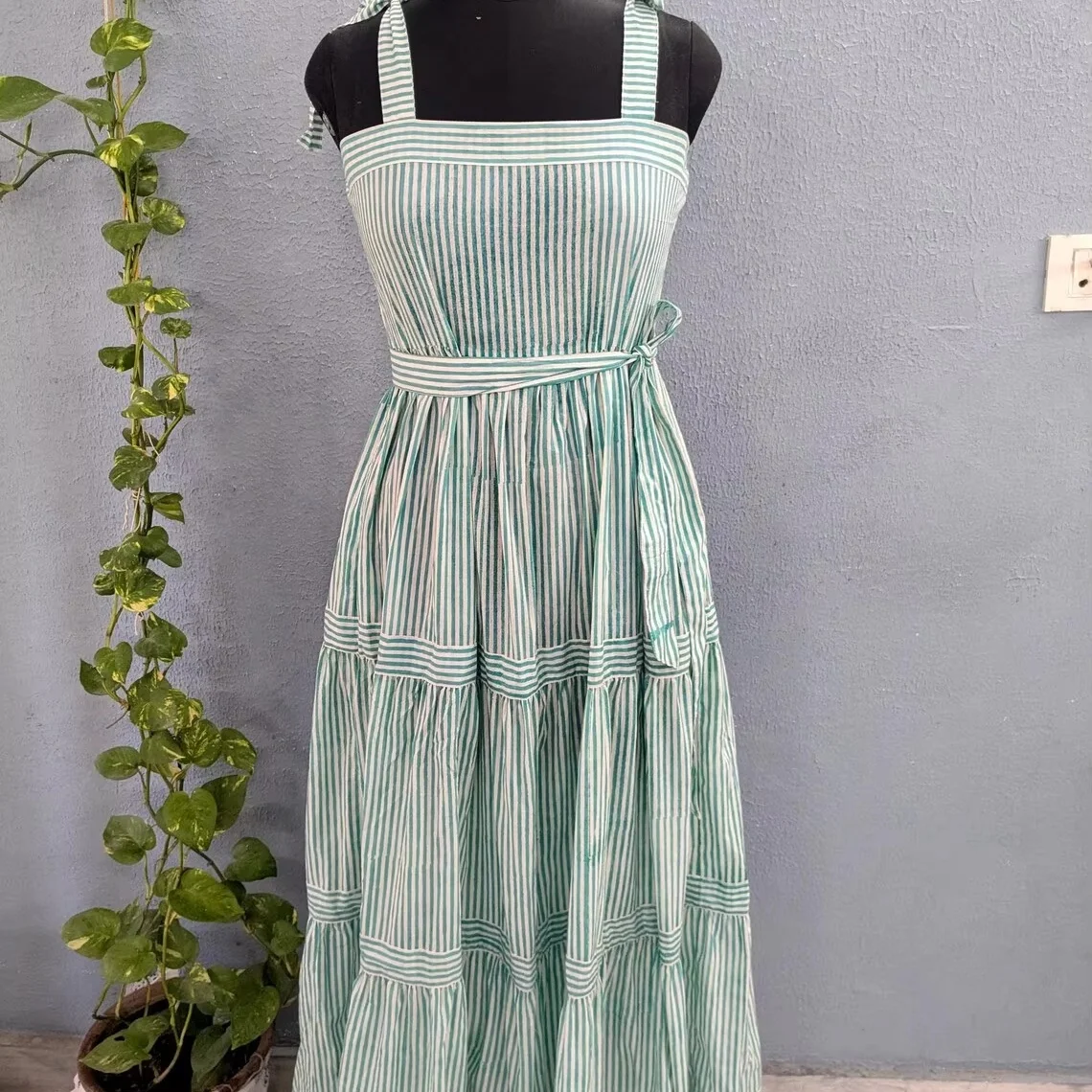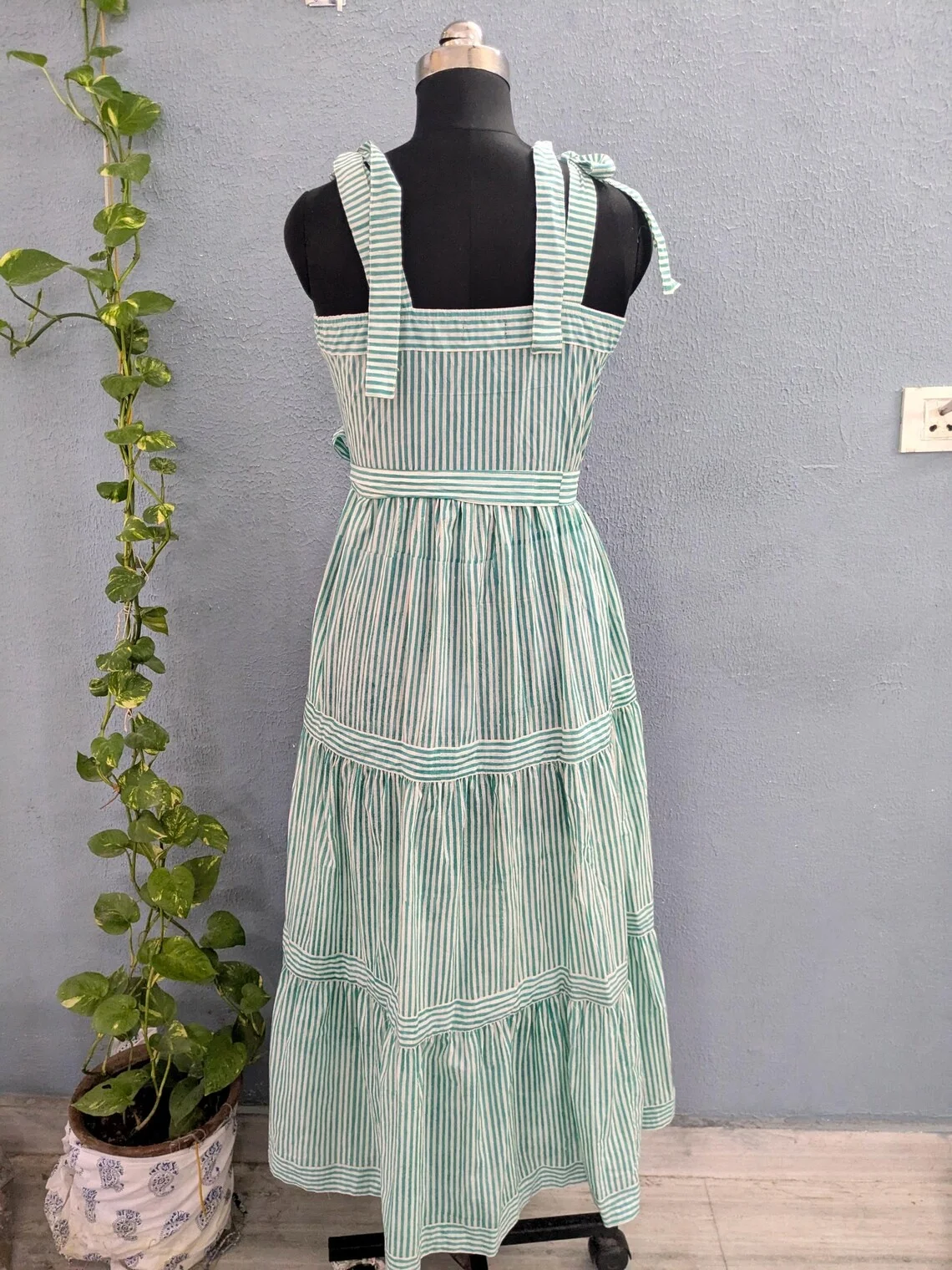 Indian Block Print Maxi Dress Cotton Hand Print with Long Dress Pocket Block Print Cotton Dress For Summer Season