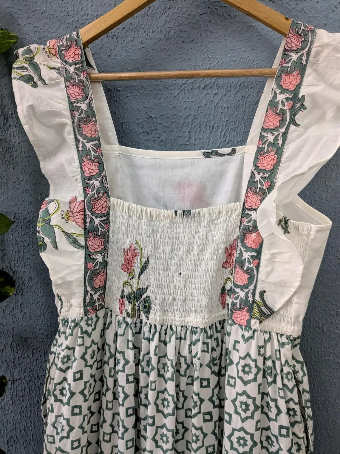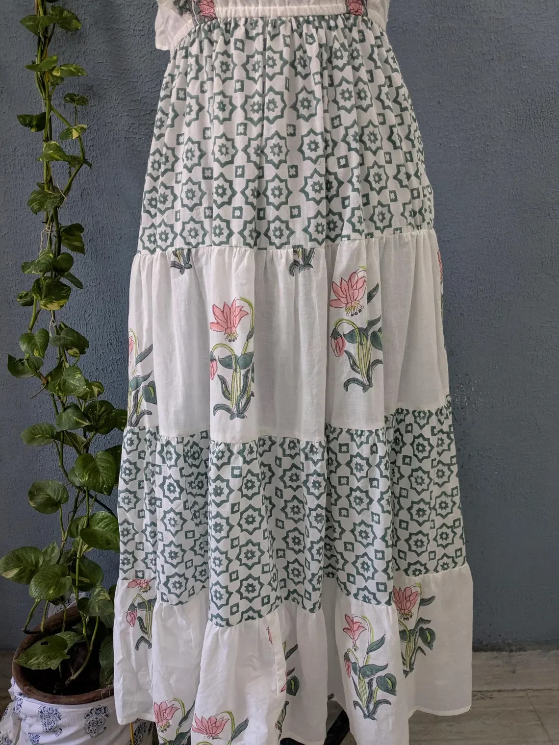 Hand Block Printed Cotton Maxi Dress Floral Handmade Square Neck Sleeveless Floral Patter Embroidery Long Maxi Dress For Women