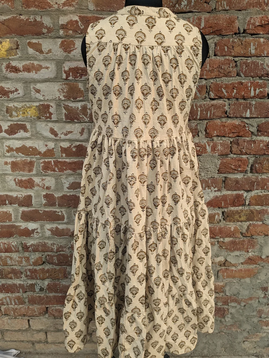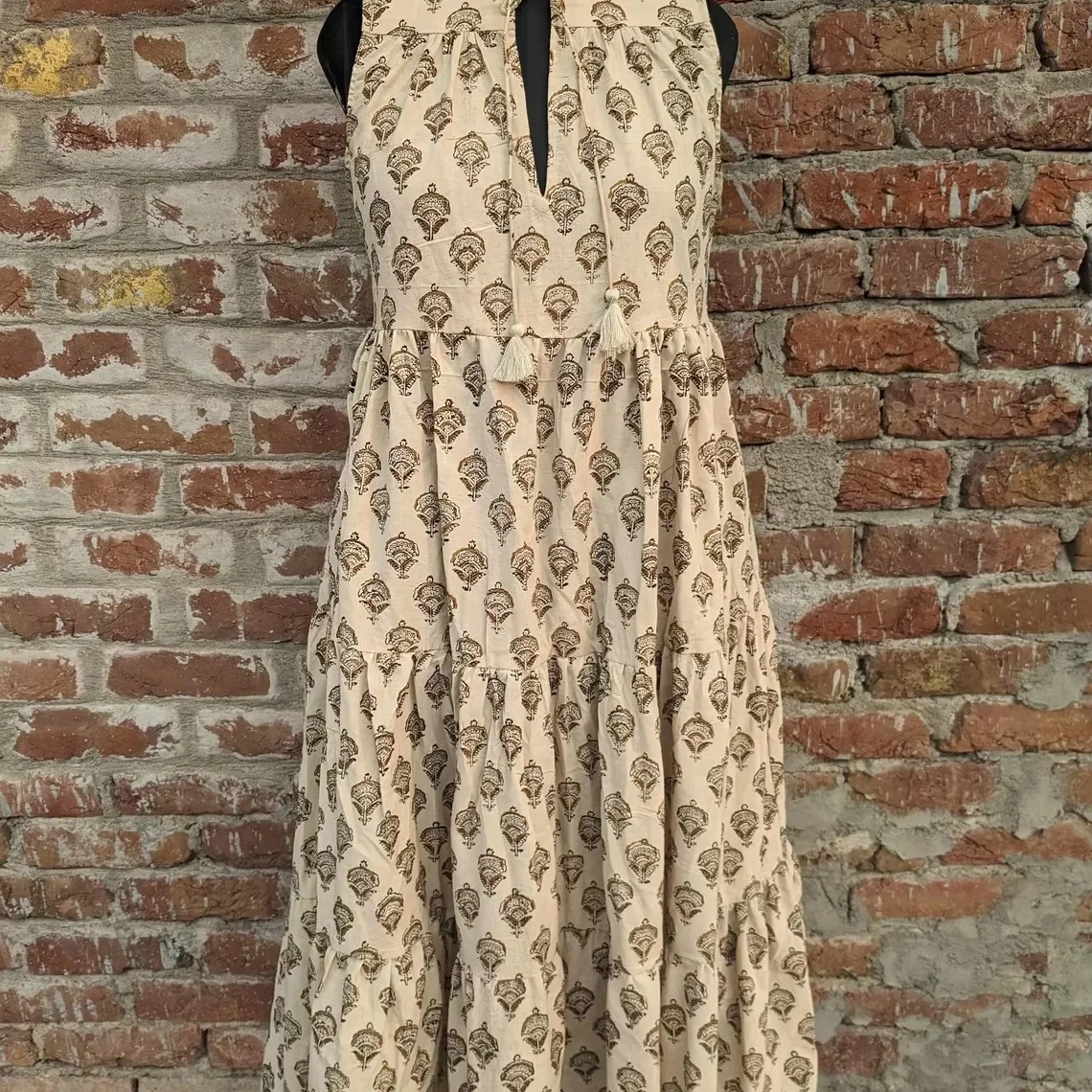 Women's 100% Cotton Summer Dress Hand-Block Printed Maxi Tier Dress Solid Pattern Sustainable Autumn/Summer Season
