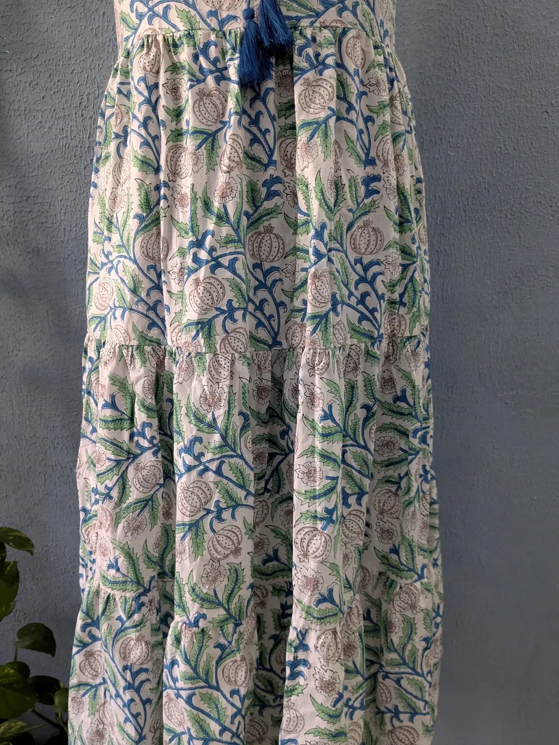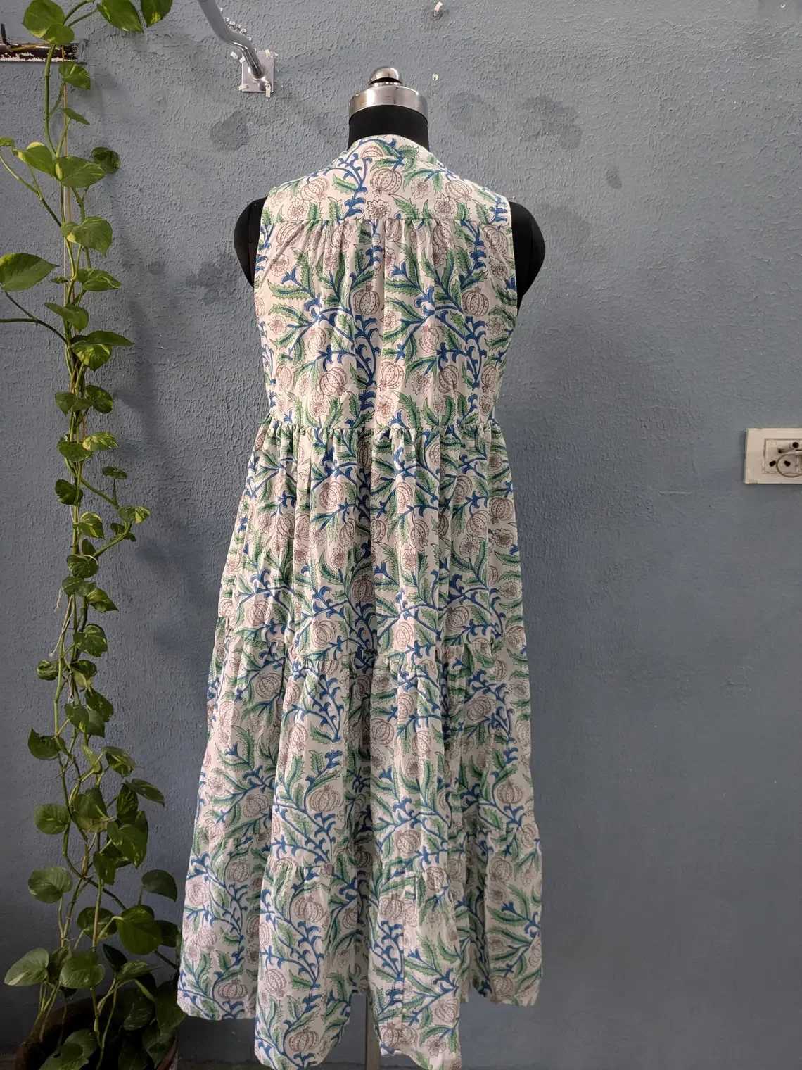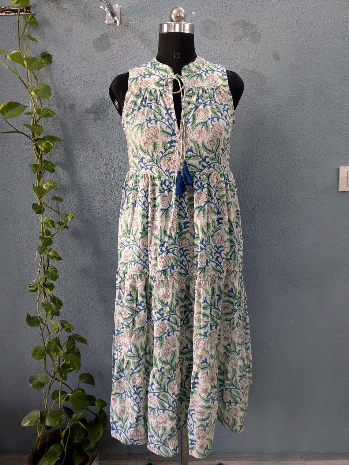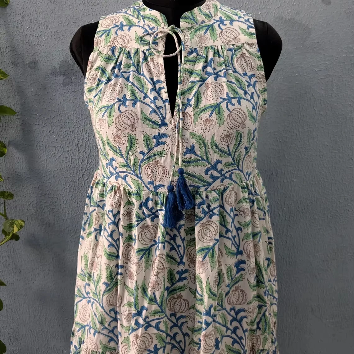 Hand Block Print Cotton Dress Women Cotton Summer Dress Sleeveless Mandarin Collar Floral Print Long Maxi Gown For Women