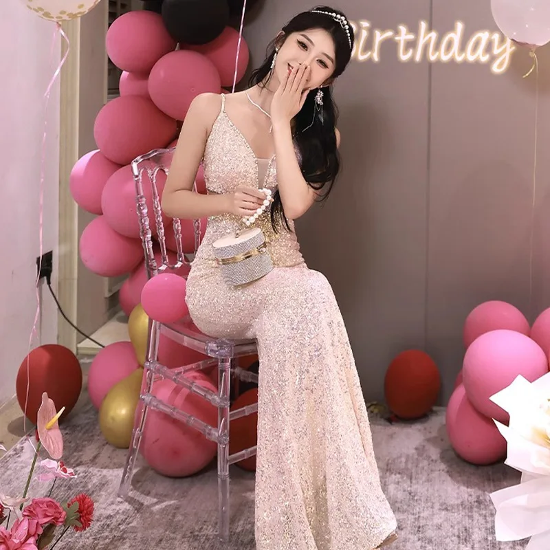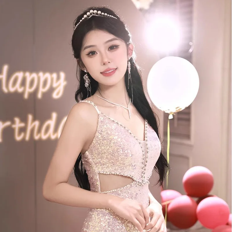 Luxury Elegant Celebrity Candy Color Tea-Length Summer Bodycon Cocktail Dress for Wedding Birthday Toast Engagement Ceremonies