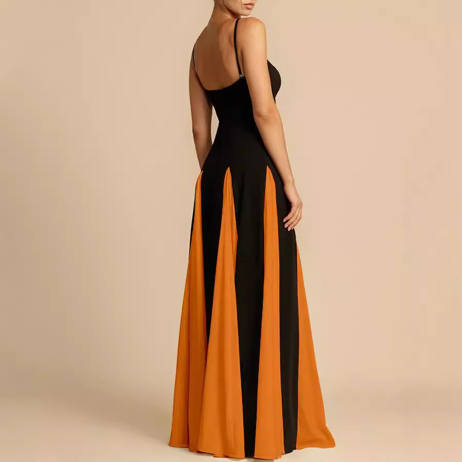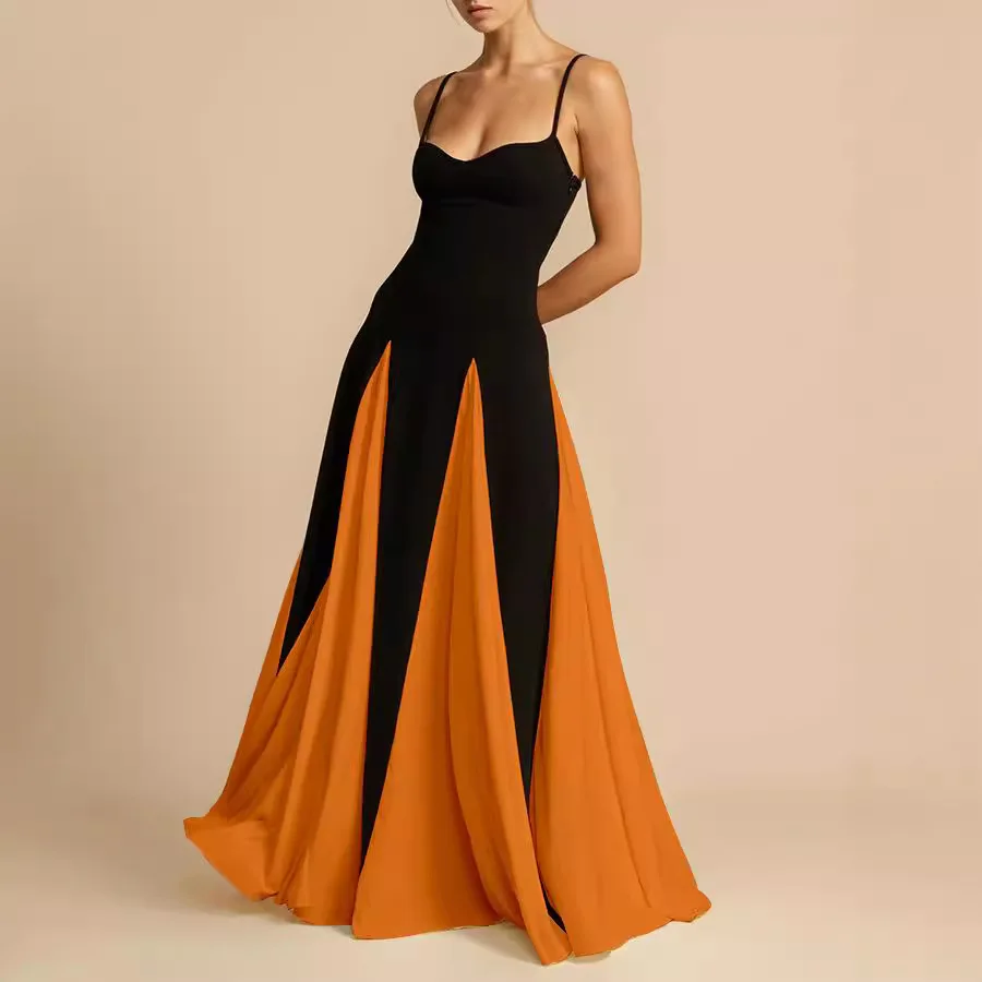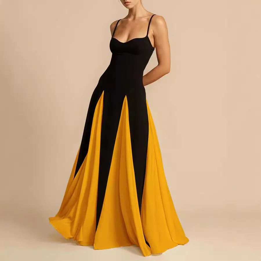 Elegant Trendy Solid Pattern Off-Shoulder Splicing Club Camisole Dress Plain Dyed Chiffon Floor-Length Evening Dress for Women