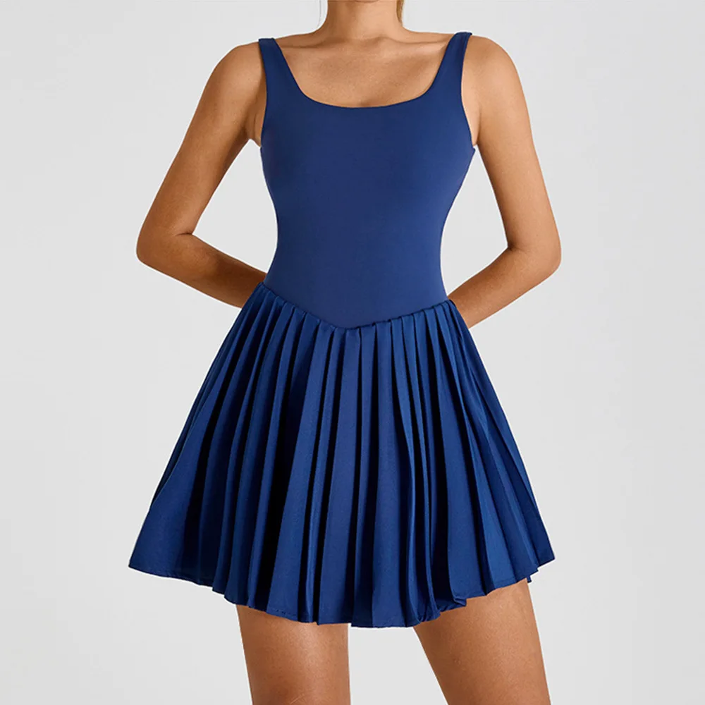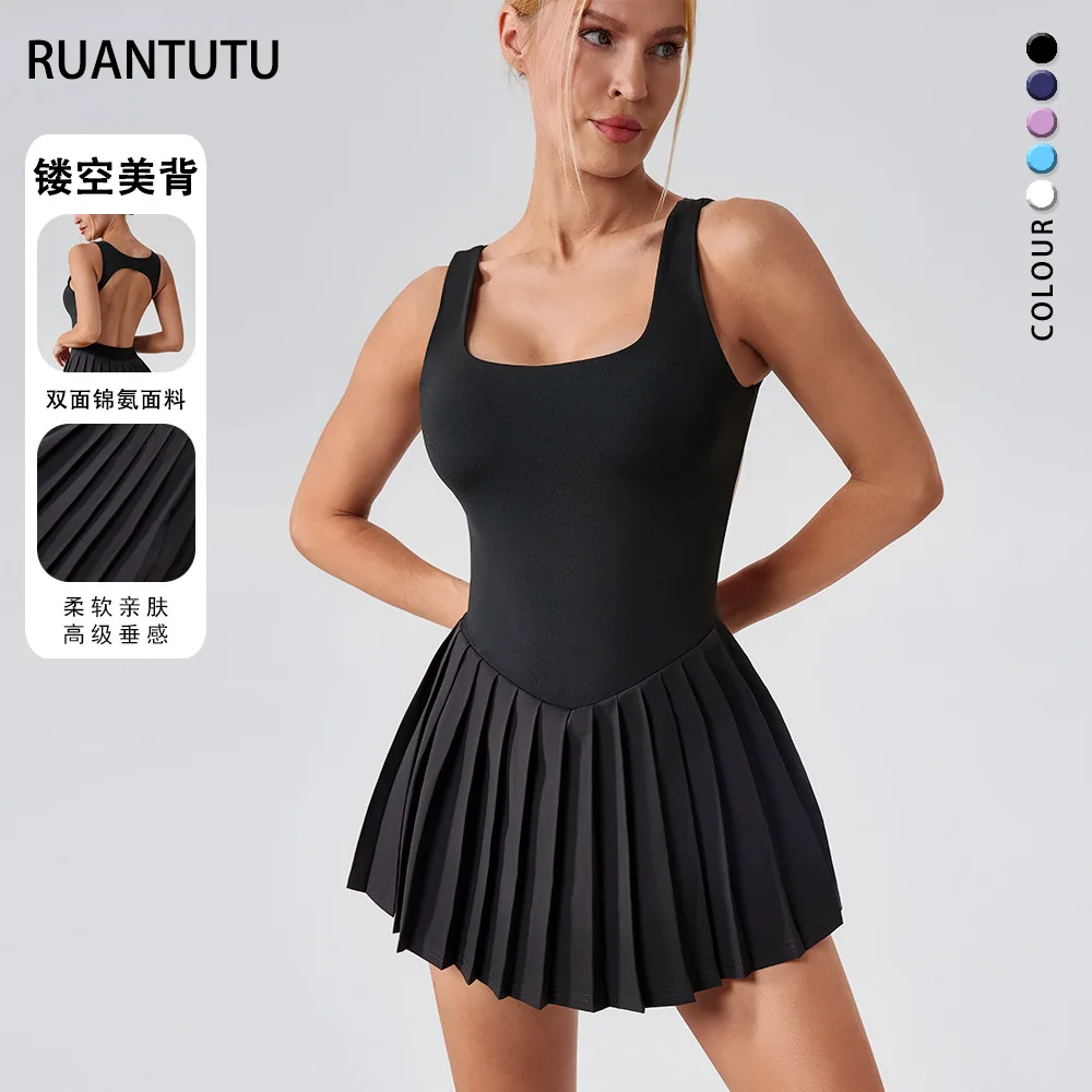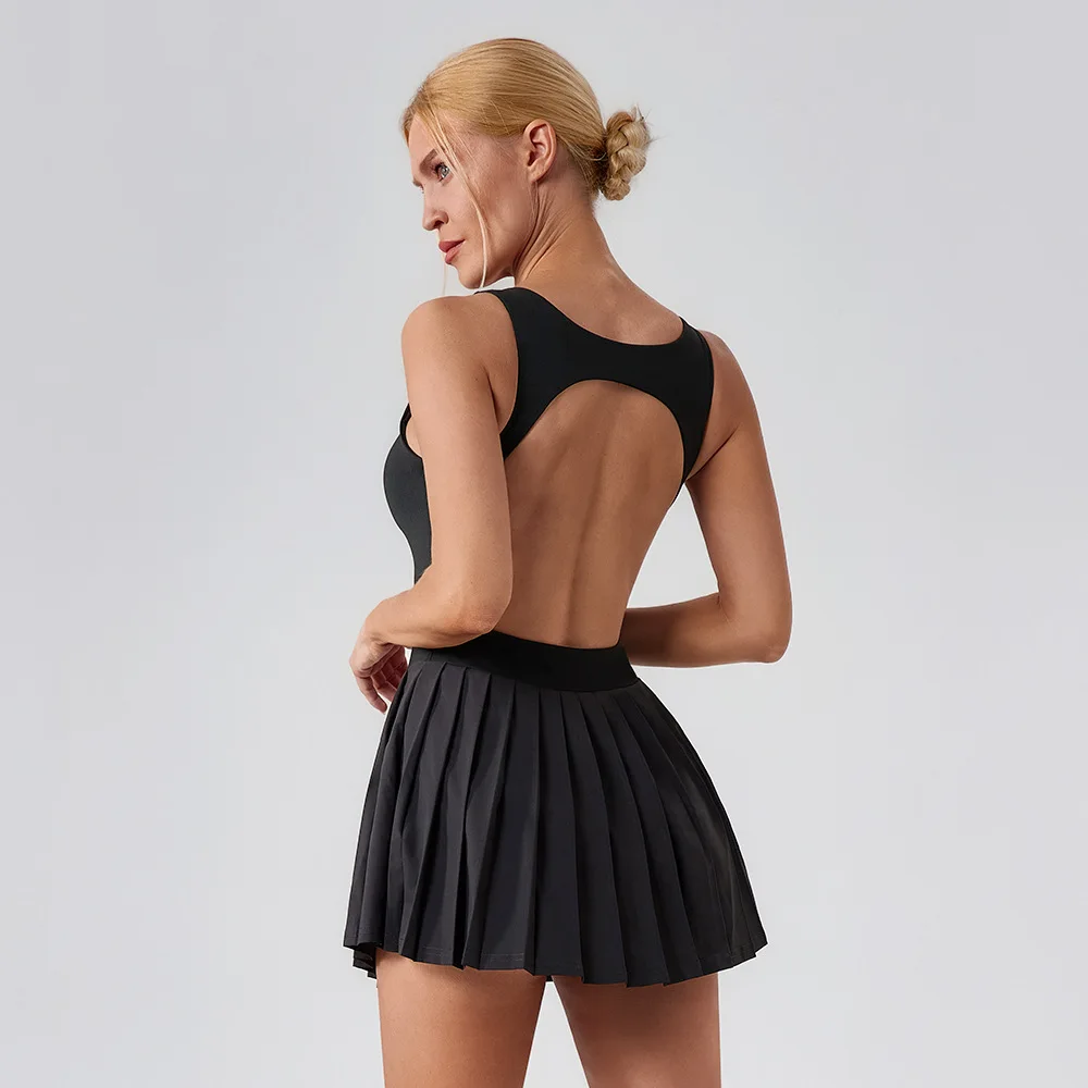 OEM Anti-Running Fitness Mini Dress Breathable Hollow out Sports Wear with Pocket Tennis Specific Gear