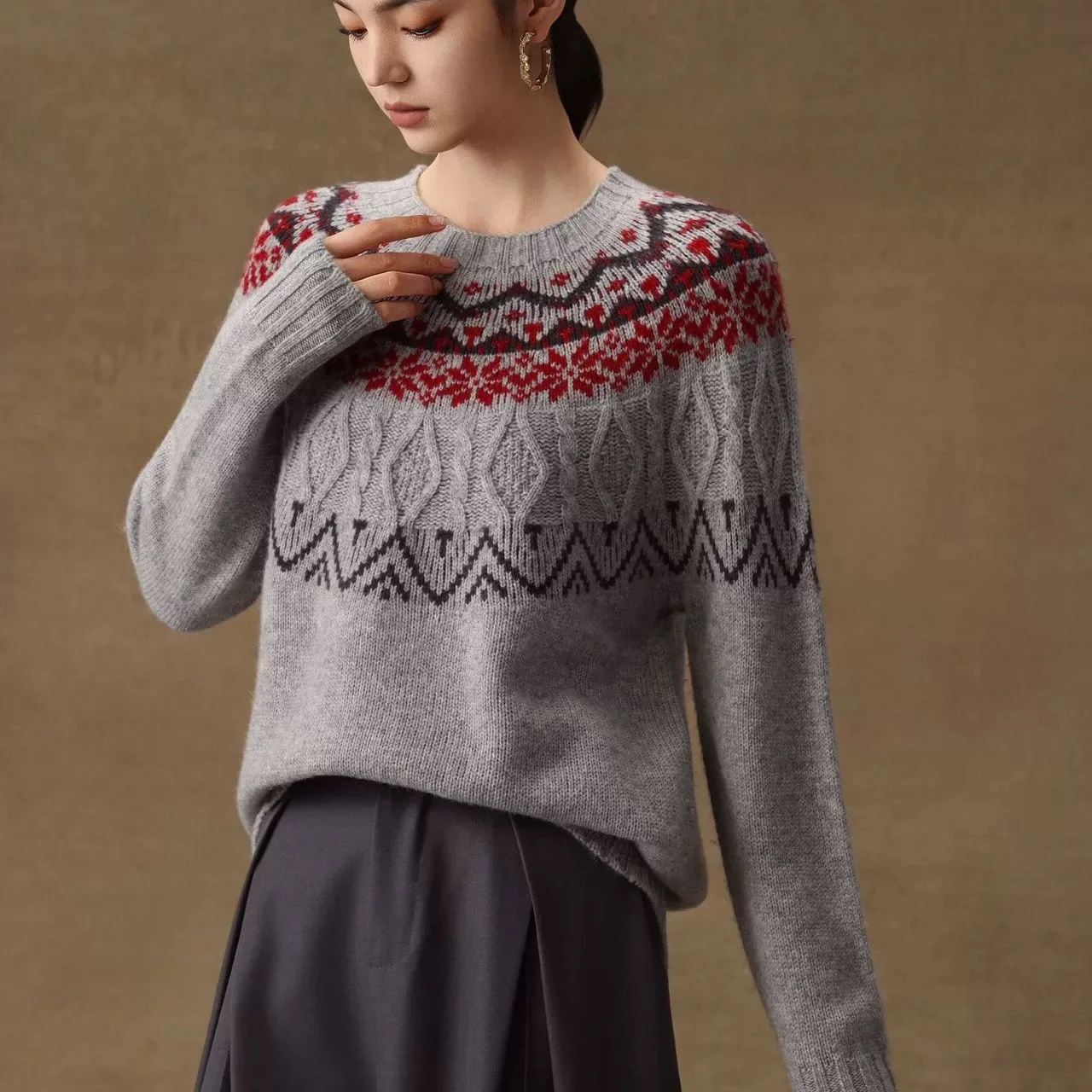 Women's Pastel Gradient Nordic Pattern Sweater Christmas Winter Soft Knitted Pullover Holiday Festive